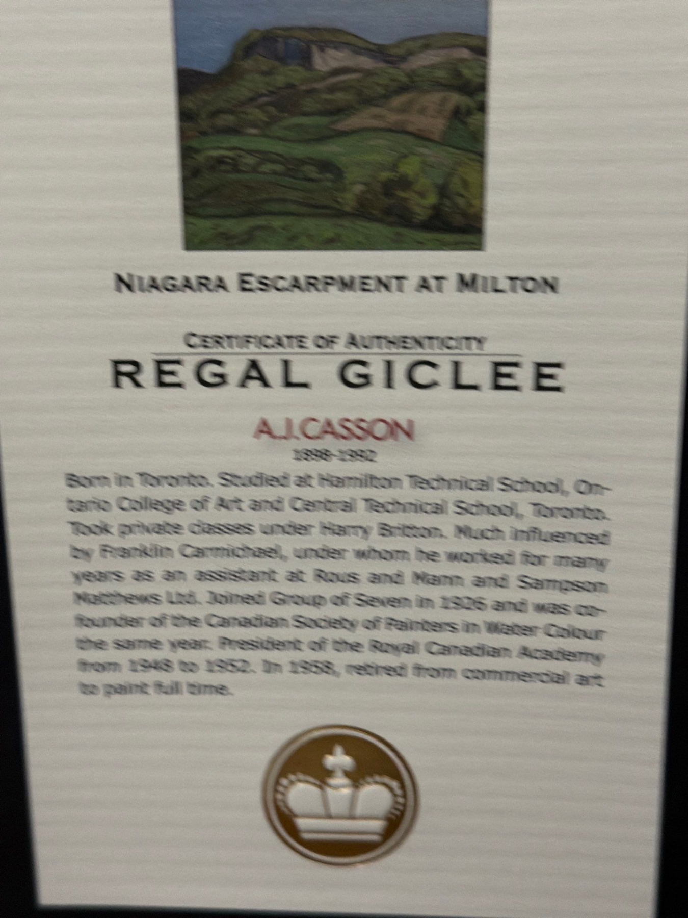Lot 98 "Niagara Escarpment at Milton", Artist: A.J. Casson, 103/2400, Framed Under Glass