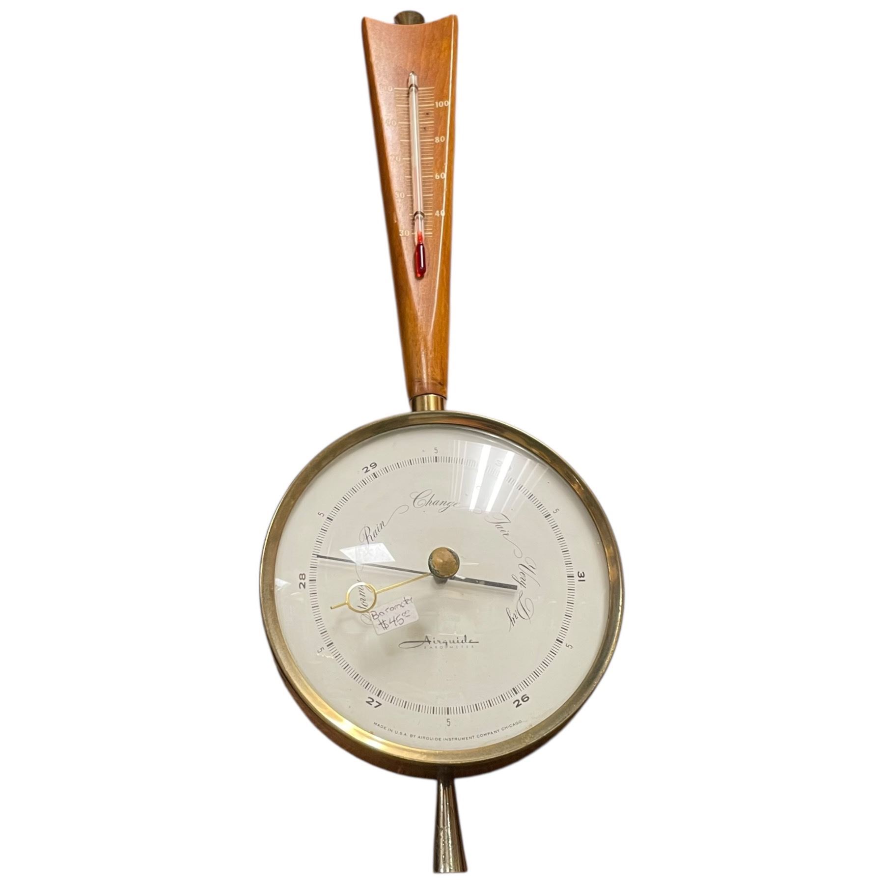 Vintage Airguide Baromoter Brass Wood and Glass Construction