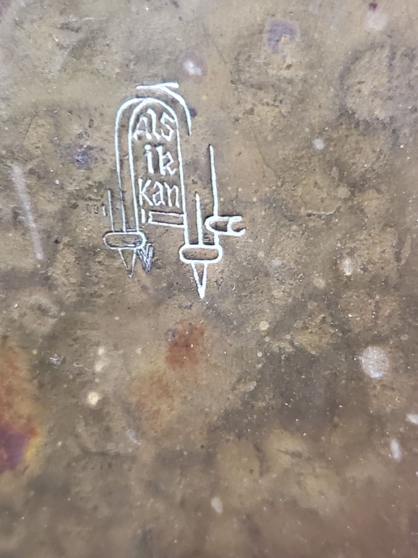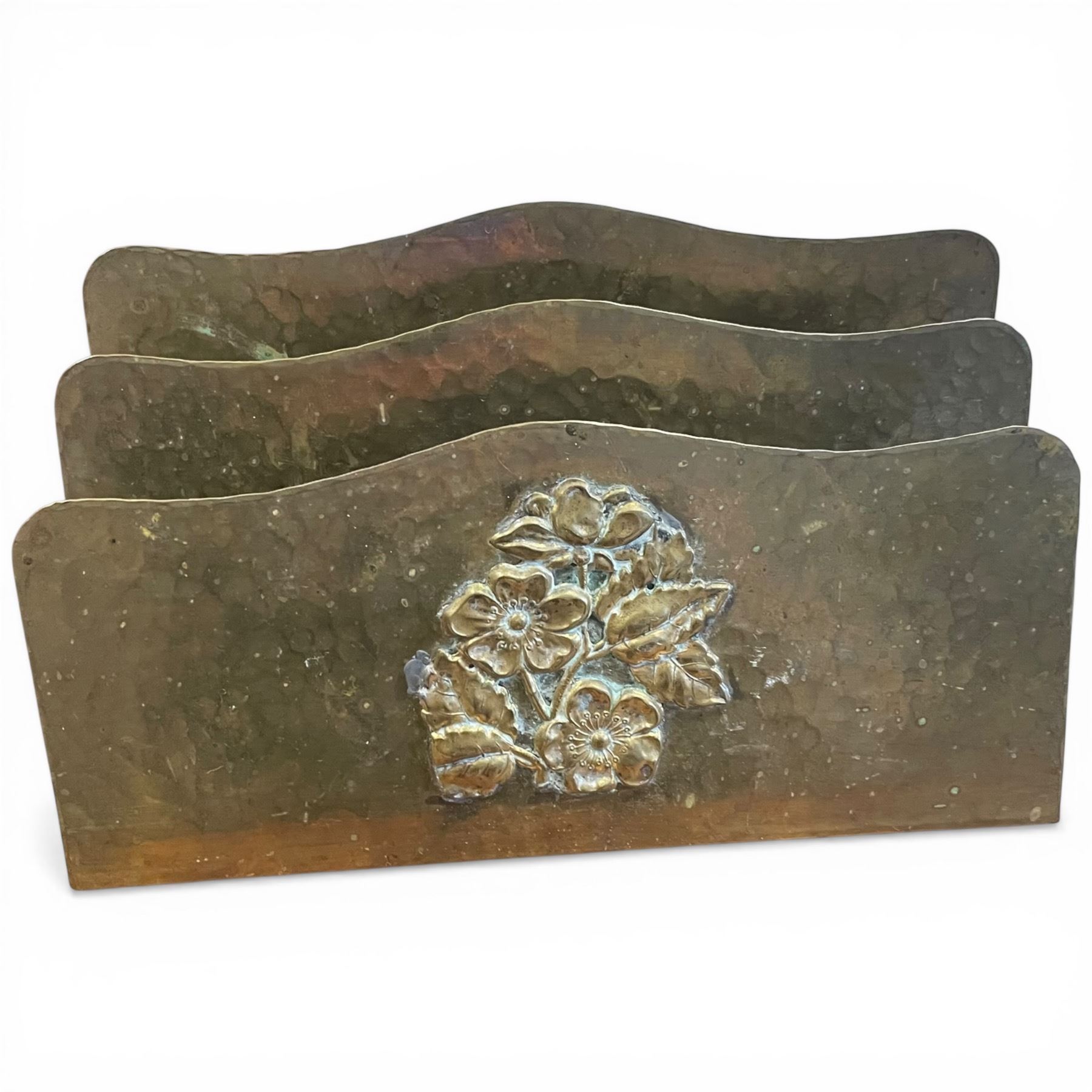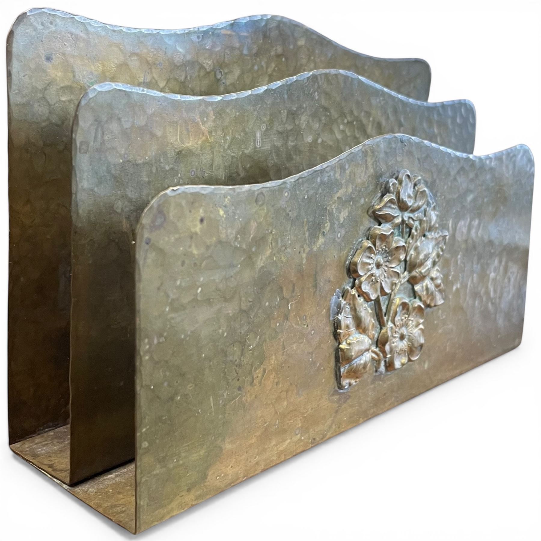 Lot 24a Gustav Stickley Hammered Brass Arts & Crafts Letter Holder * Stamped with his insignia on the back