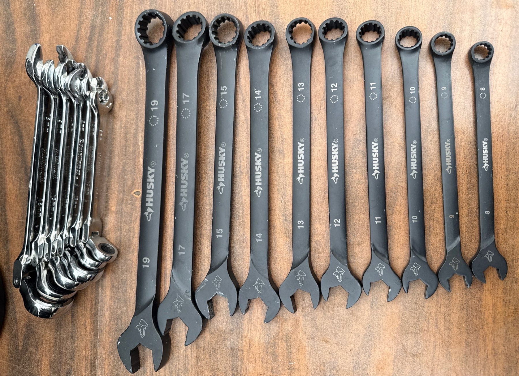 Lot 101 Husky Long Pattern Black Universal Combination Wrenchs w/ Flex Head Ratcheting Co