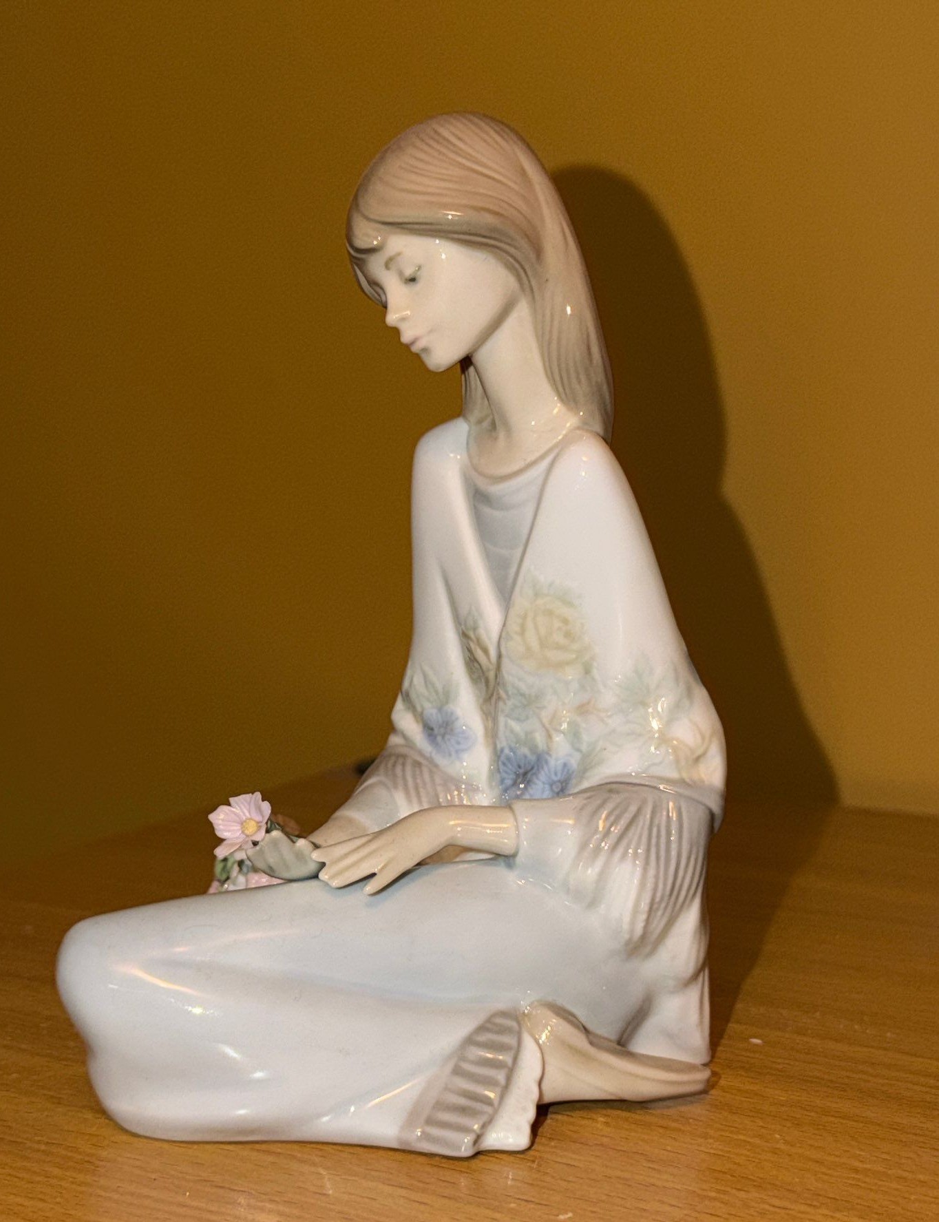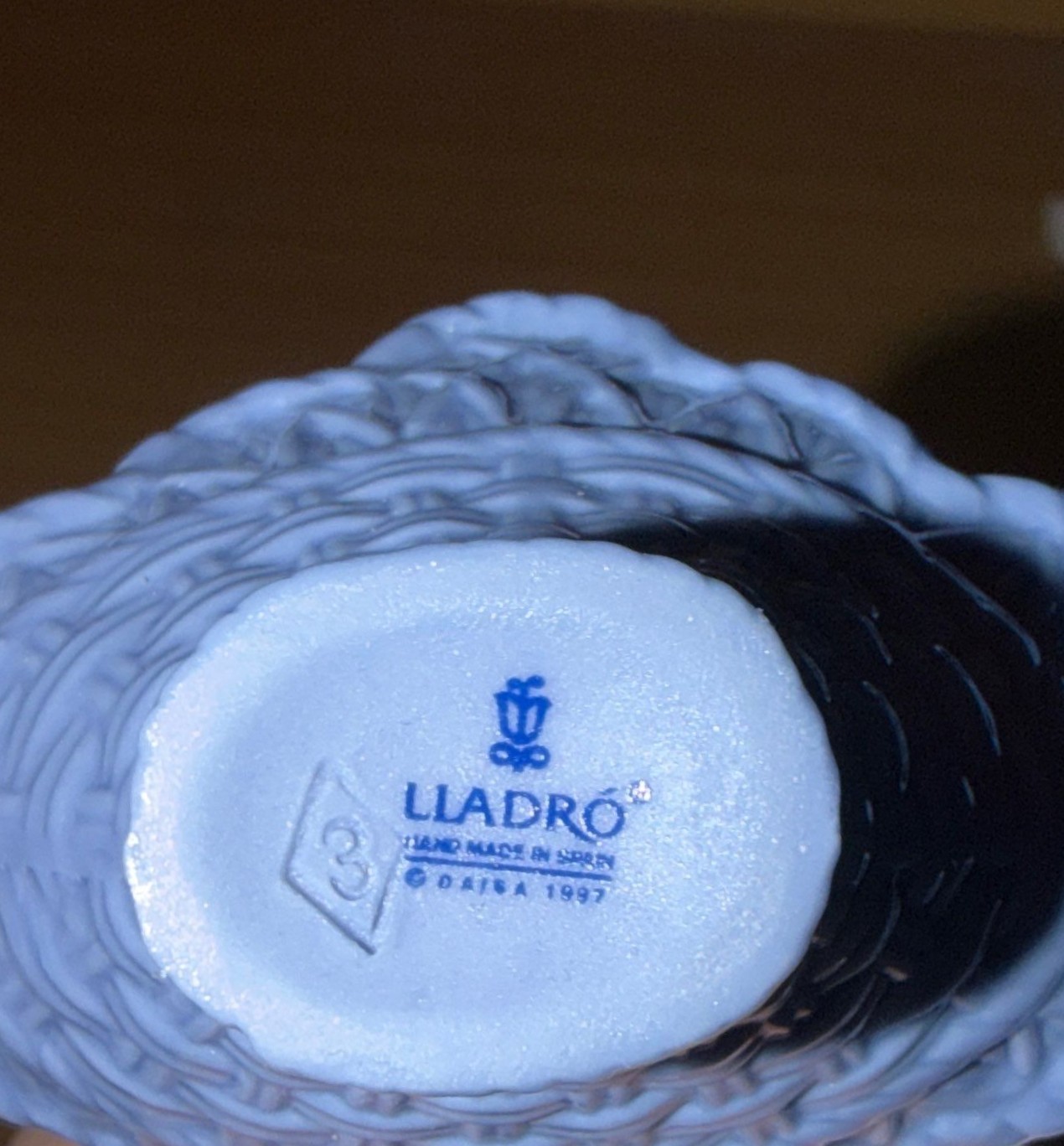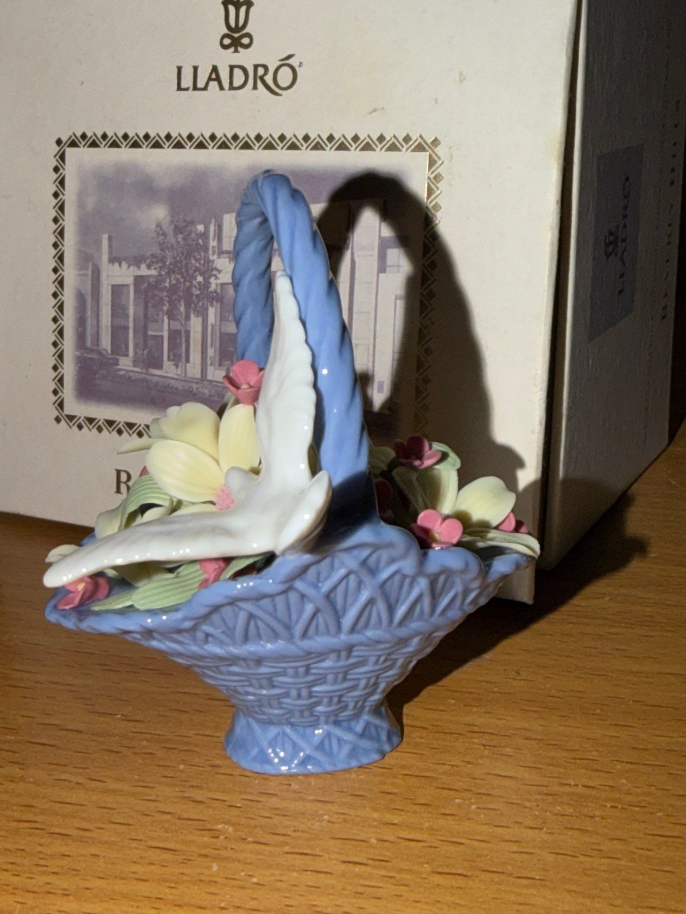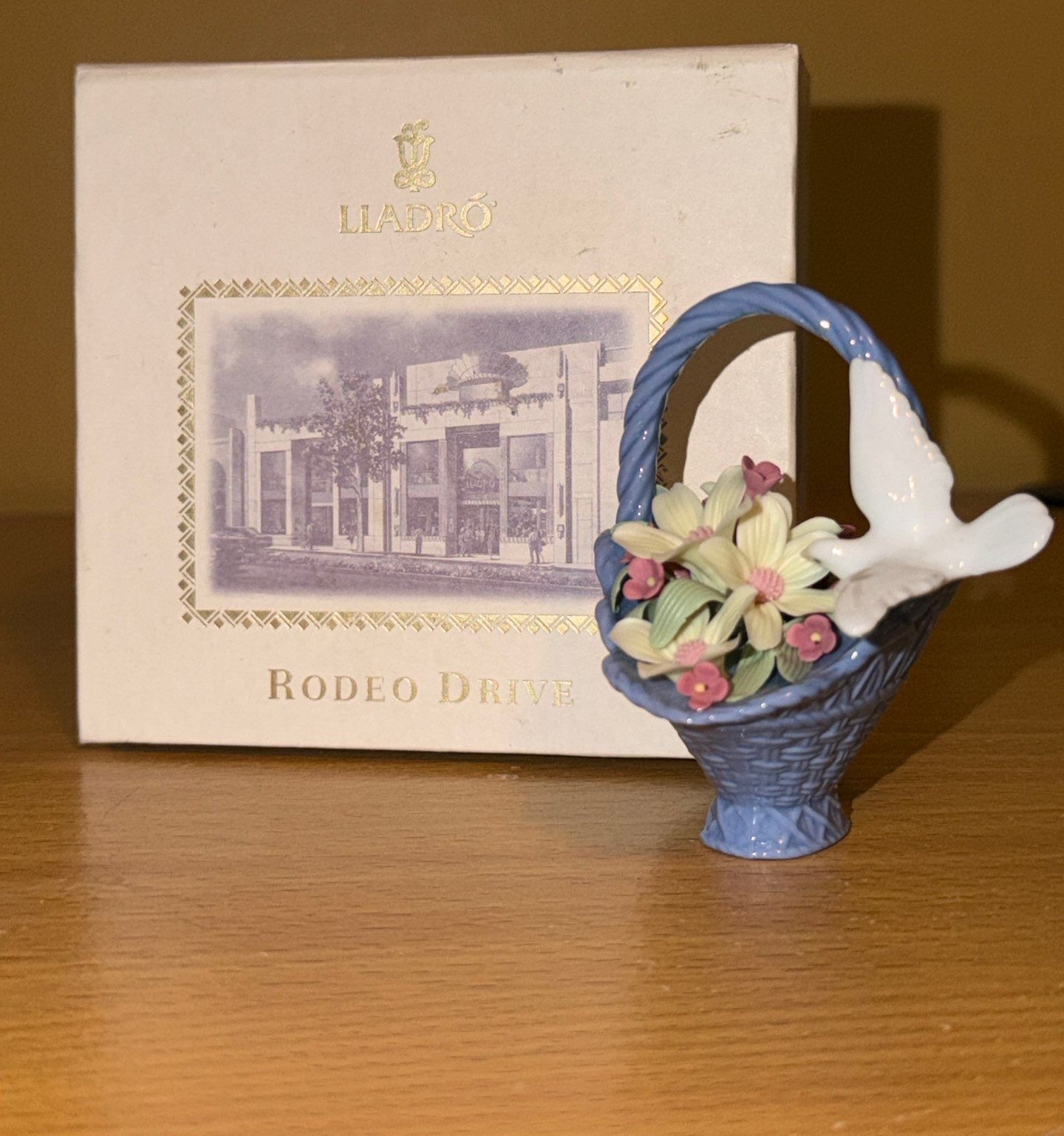 Lot 147 Lladro Figurines: Female w/ Flowers 4 W, 5 D, 7.5 T, Mini Flower Basket w/ Bird 3 T