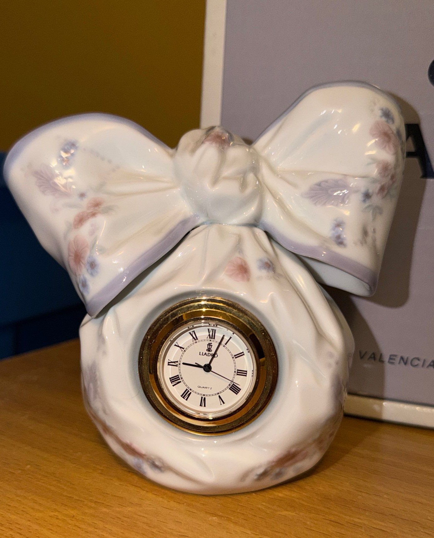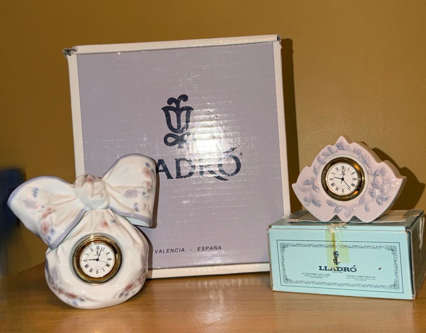 Lot 153 Lladro Clocks: w/ Bow Top 5 W, 3.5 D, 5.5 T and Smaller 3 T