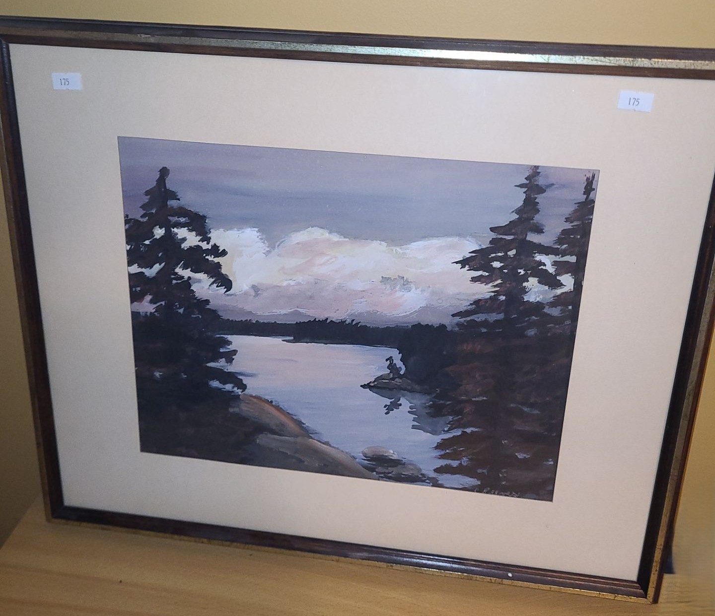 Lot 175 Lake View Under Blue Sky, Artist: Illegible, 21 X 17 Framed Under Glass