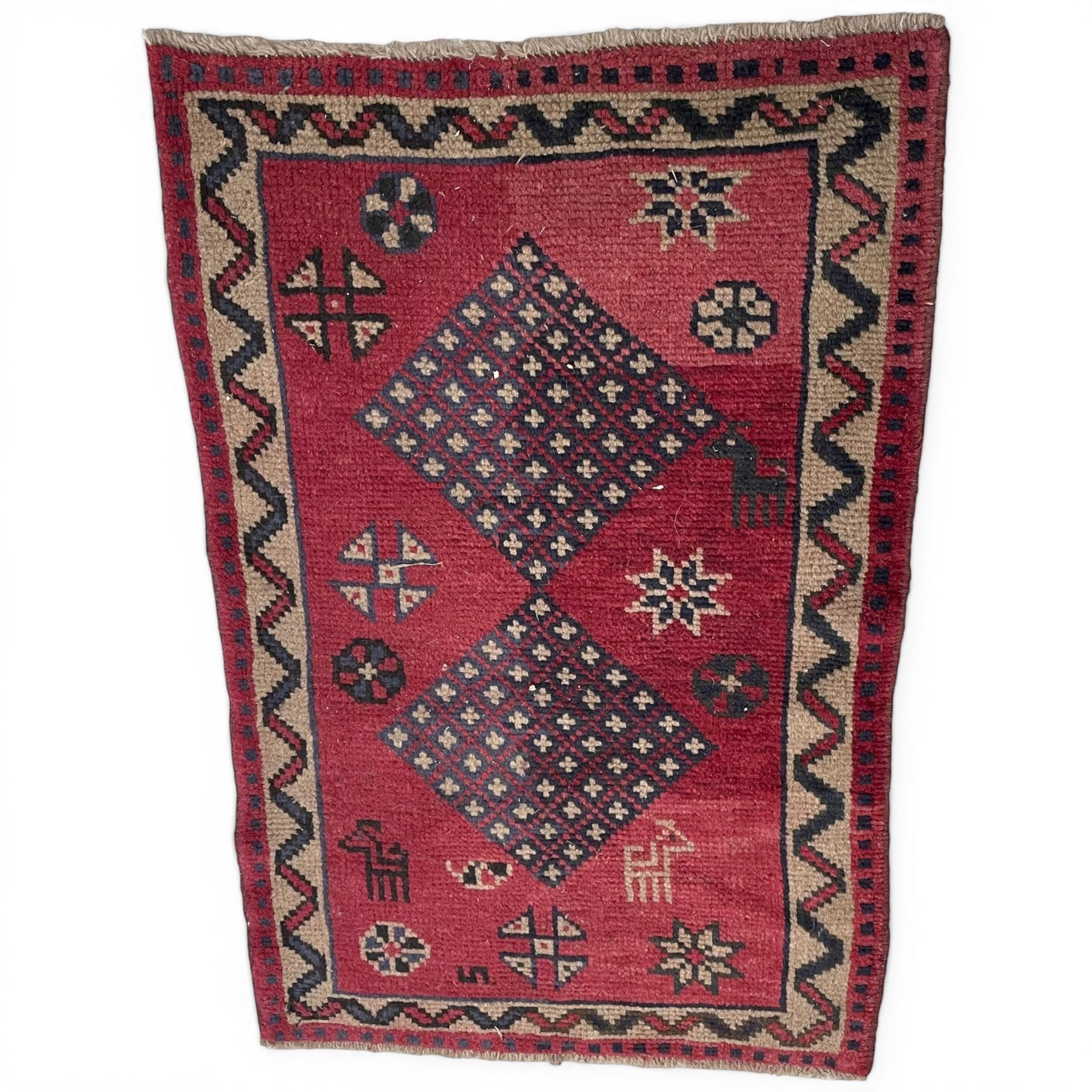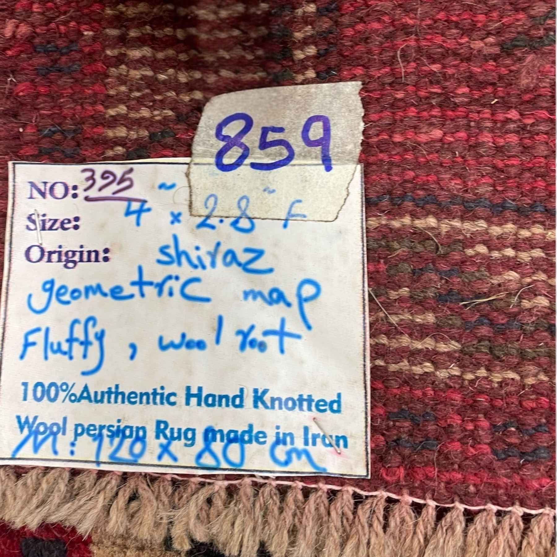 Lot 380a Genuine Hand Knotted Persian Wool Carpet from Iran * Shiraz (4' x 2'8" / 120cm x 80cm)