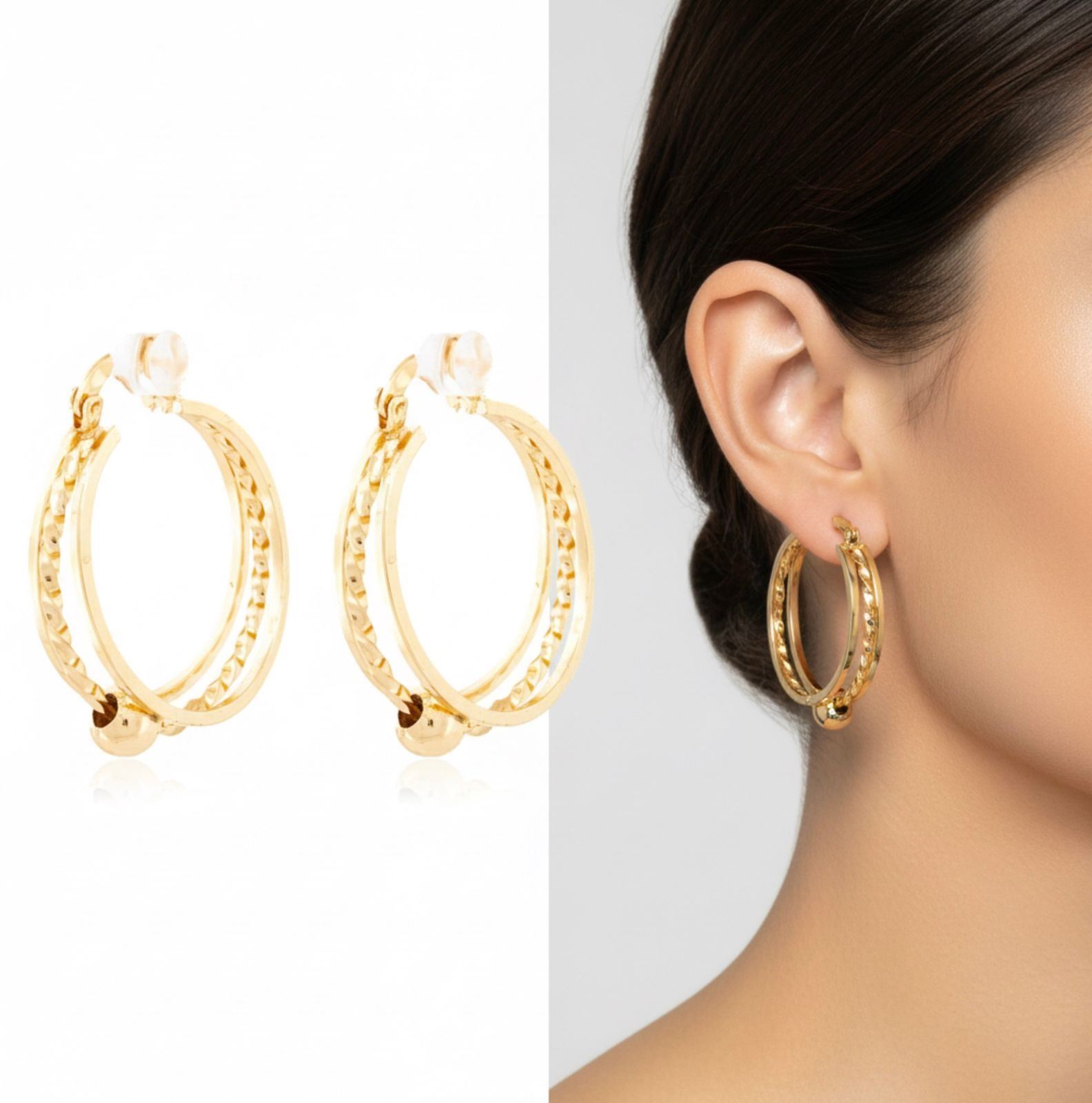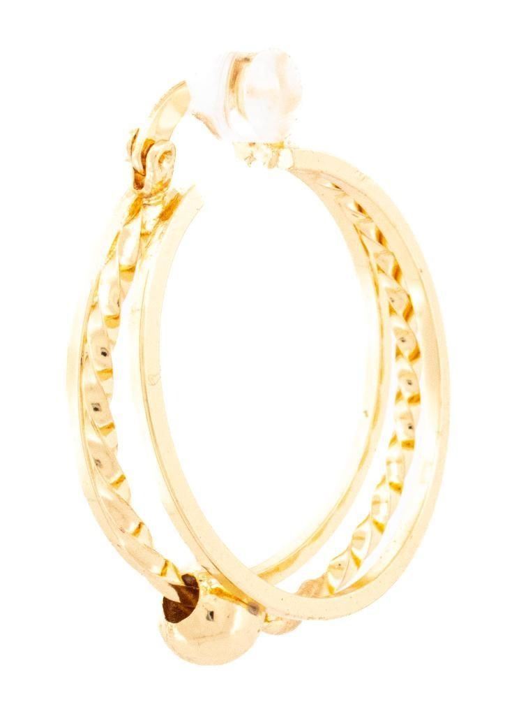 Lingna 18kt Oro Laminmado Triple Hoop Style Earrings W/Gold Bead - 23.3093 Ð A3144
