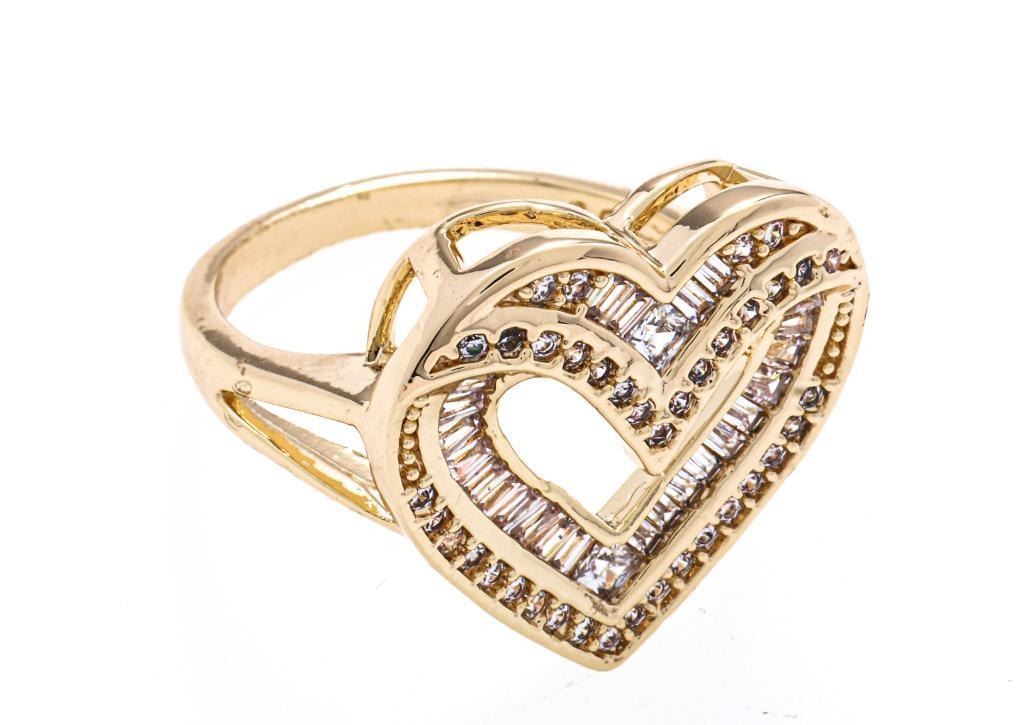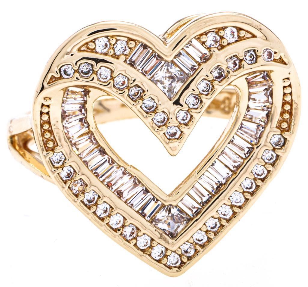 18kt Oro Laminado Double Heart Ring Pave Set w/ Baguettes & RB Gemstones Size 8 - 830227.8 Ð DIGA-174