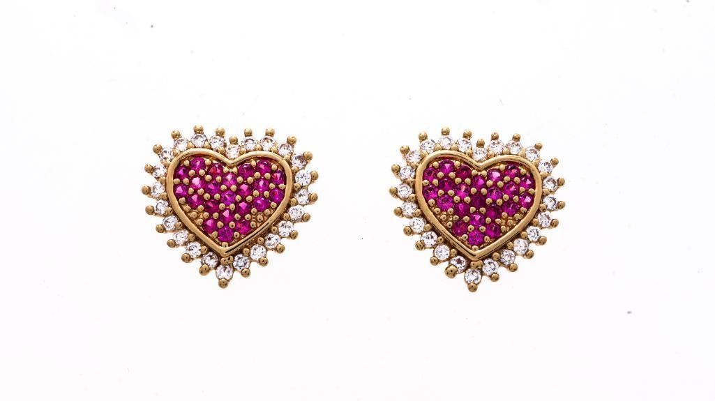 Lot 133 18kt Oro Laminado Heart Shape Stud Earrings Pink G