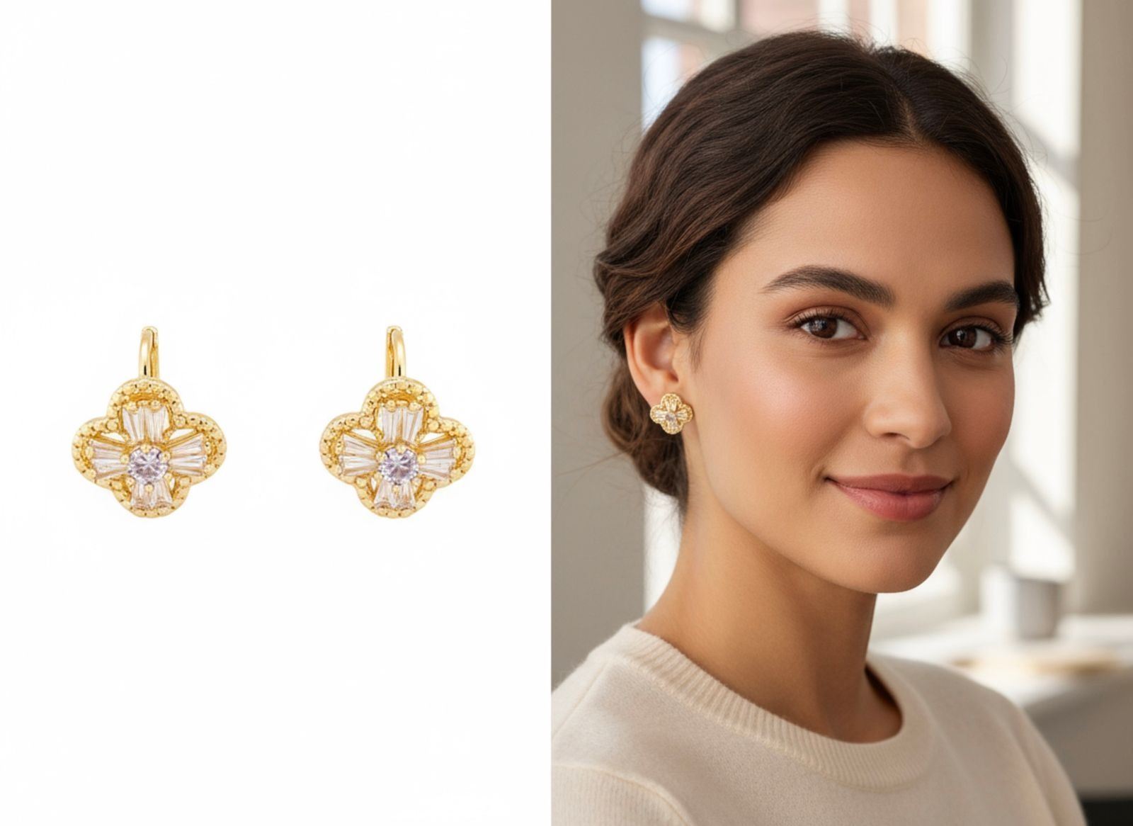 18kt Oro Laminado Fancy Baguette Gemstone w/Hoop Style Earrings Ð 1549