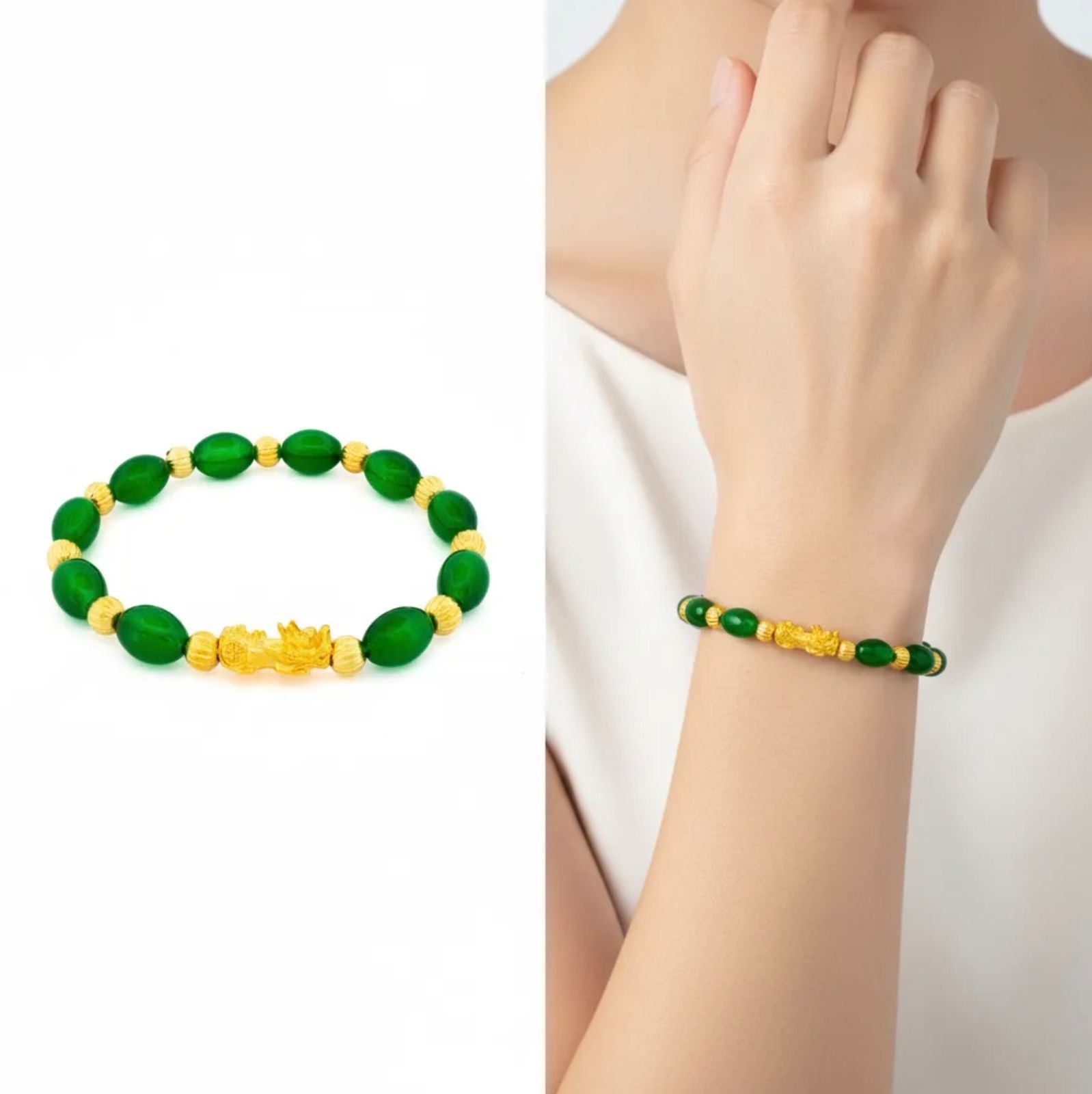 Jade Beads w/Pixiu Flex Bracelet (Green) Ð A7094