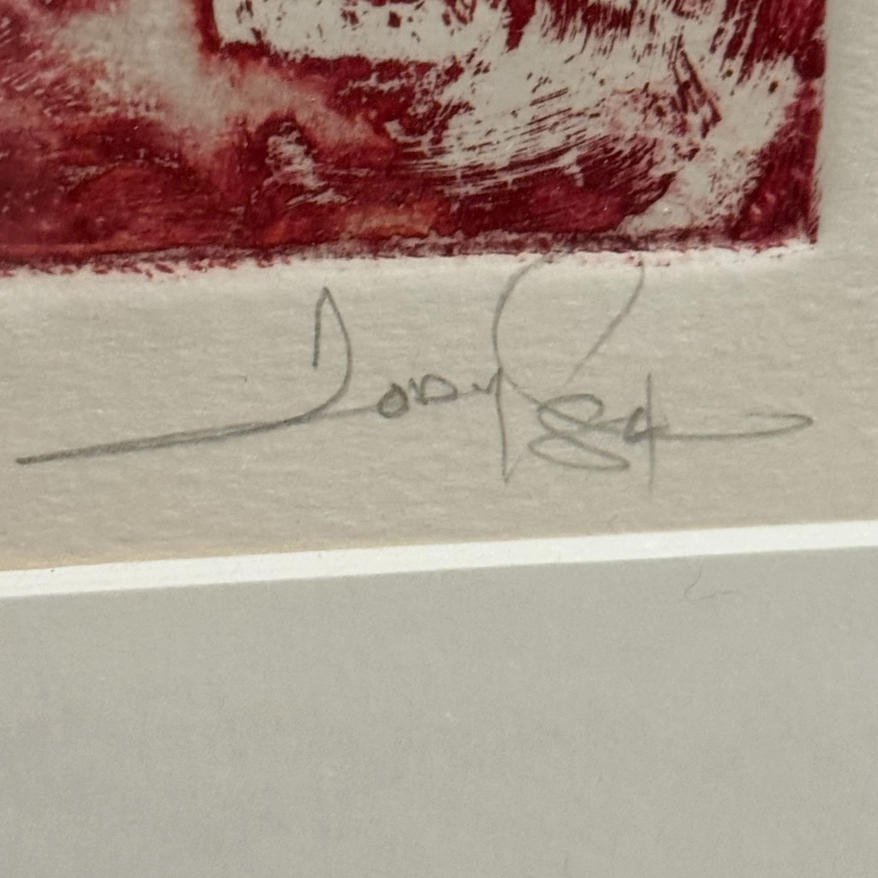 Lot 639 Framed Monotype Red Print "Fats and Rich, Teenagers" AP Artist Signed Jody Carpenter 84 35x48.5"
