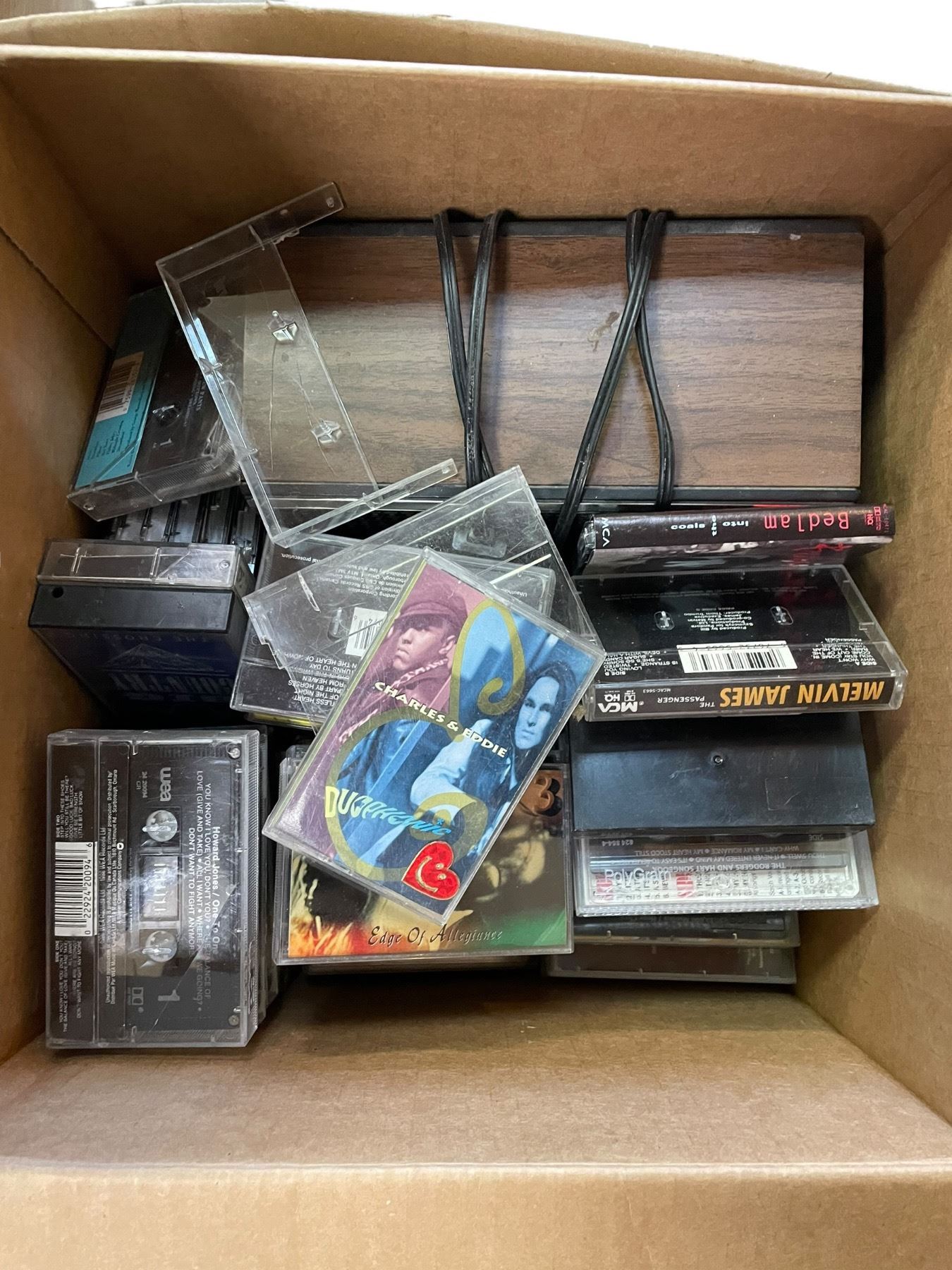 Lot 669 Box of Assorted Cassette Tapes & Radio