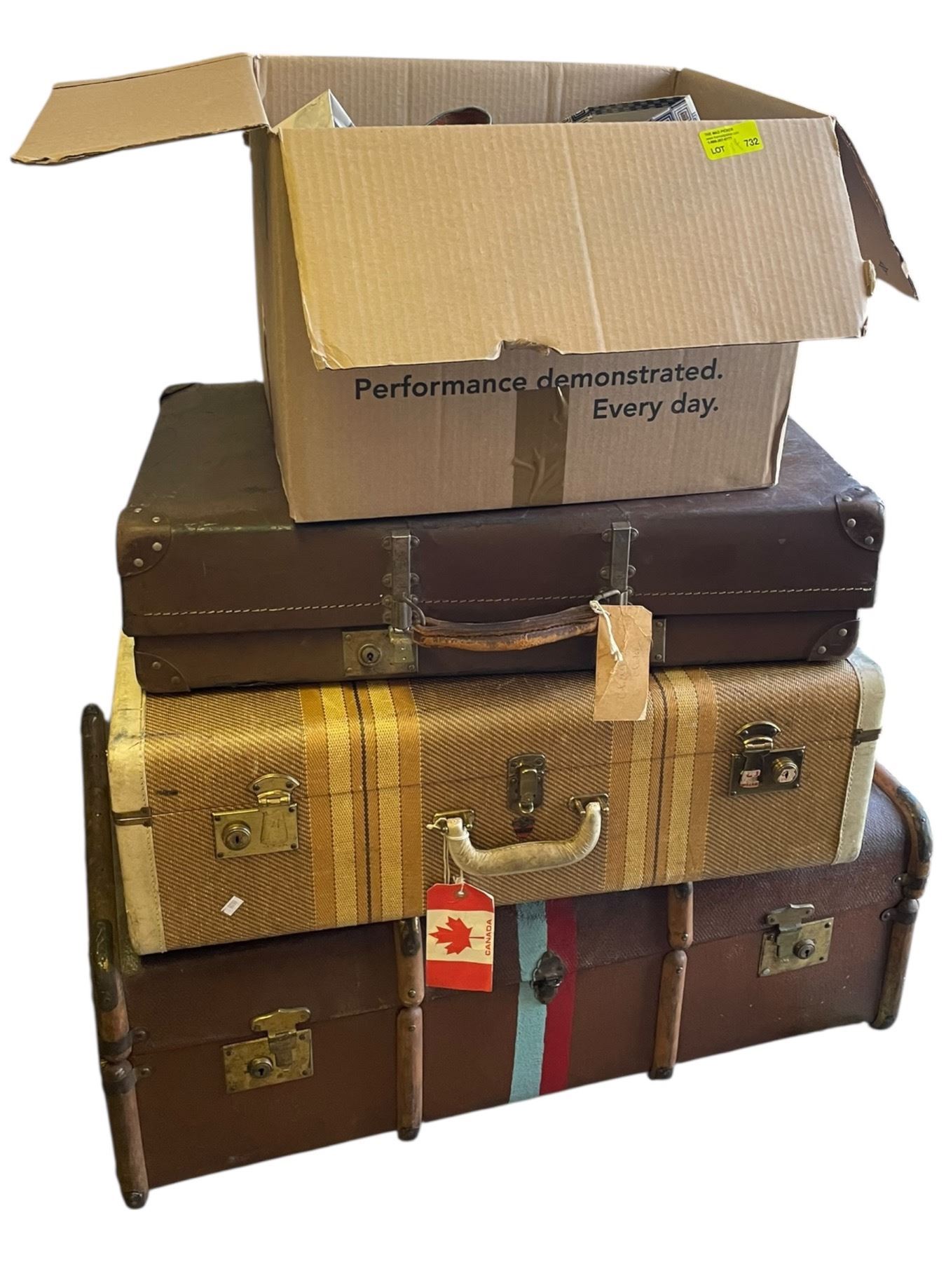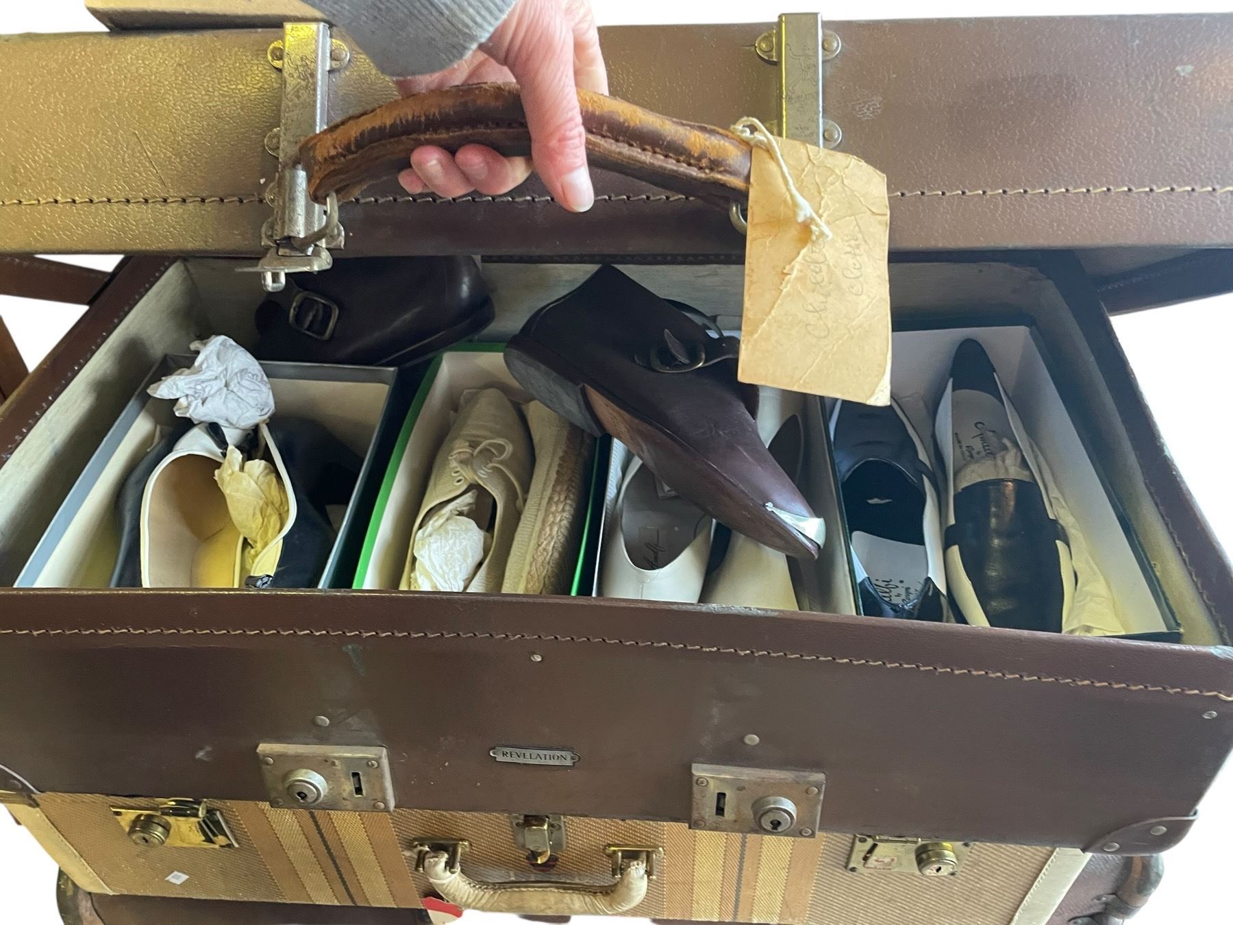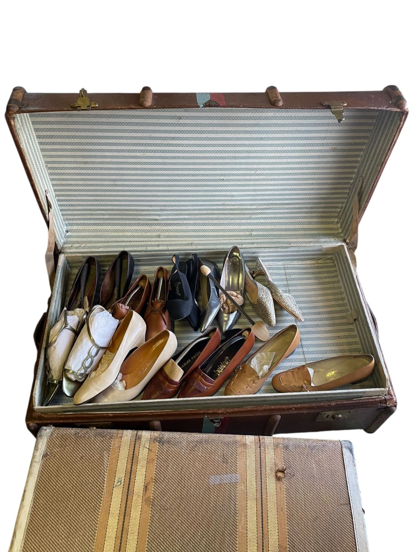 Lot 732 Large Quantity of Assorted Women's Shoes in 3 Large Vintage Suitcases and 1 Box