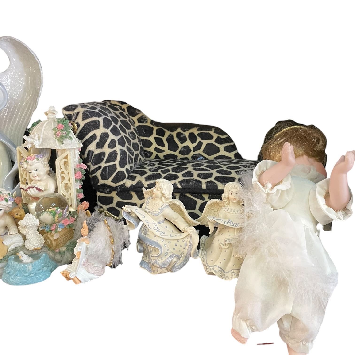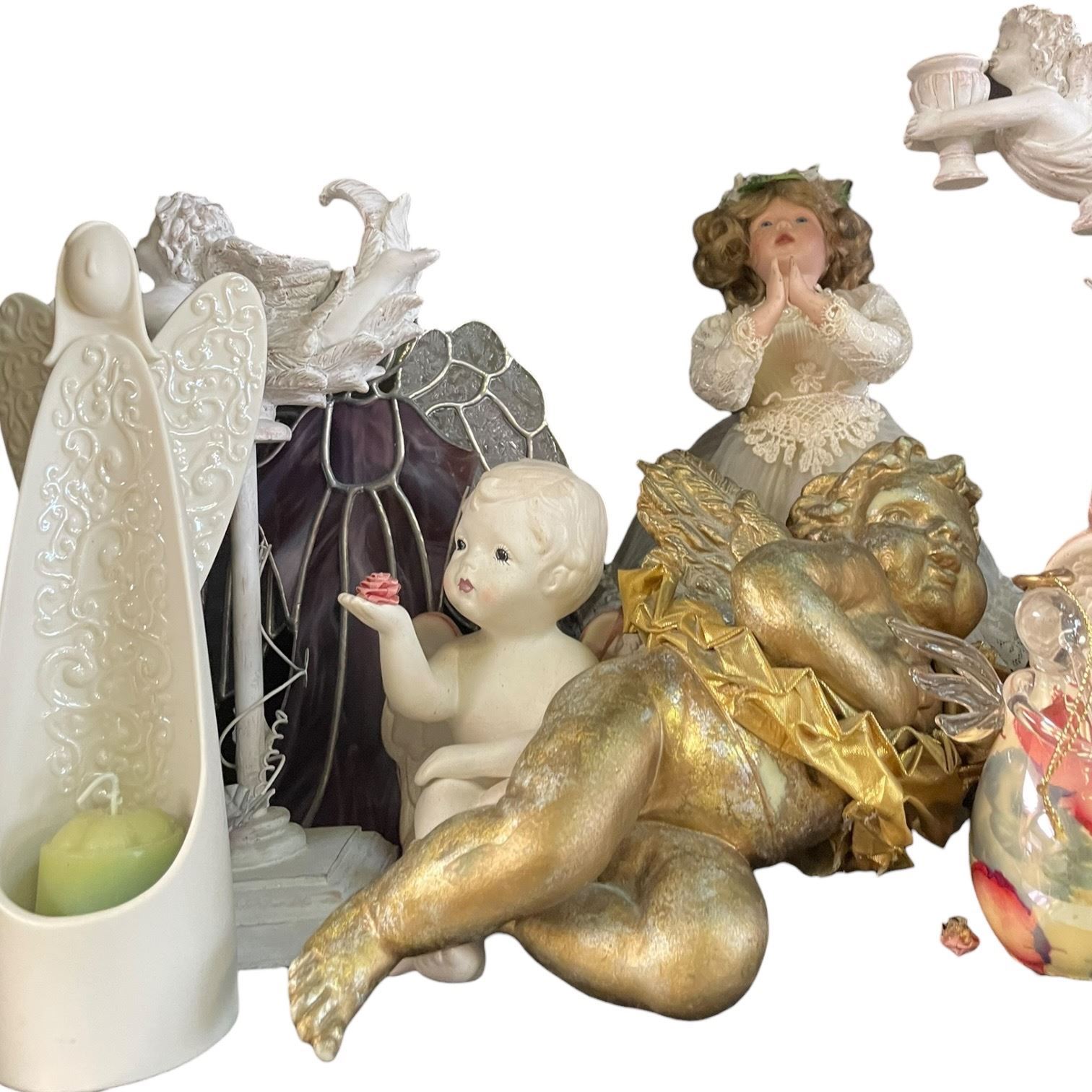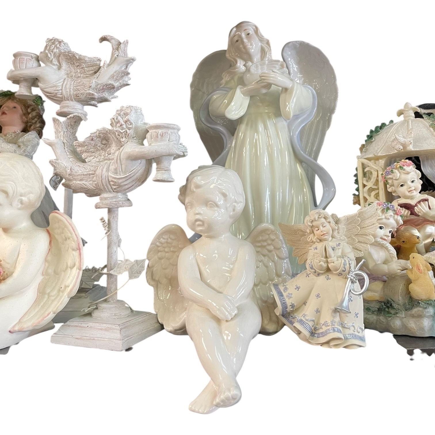 Shelf Lot of Angel and Cherubs * Variety of Materials * Tallest is 15"