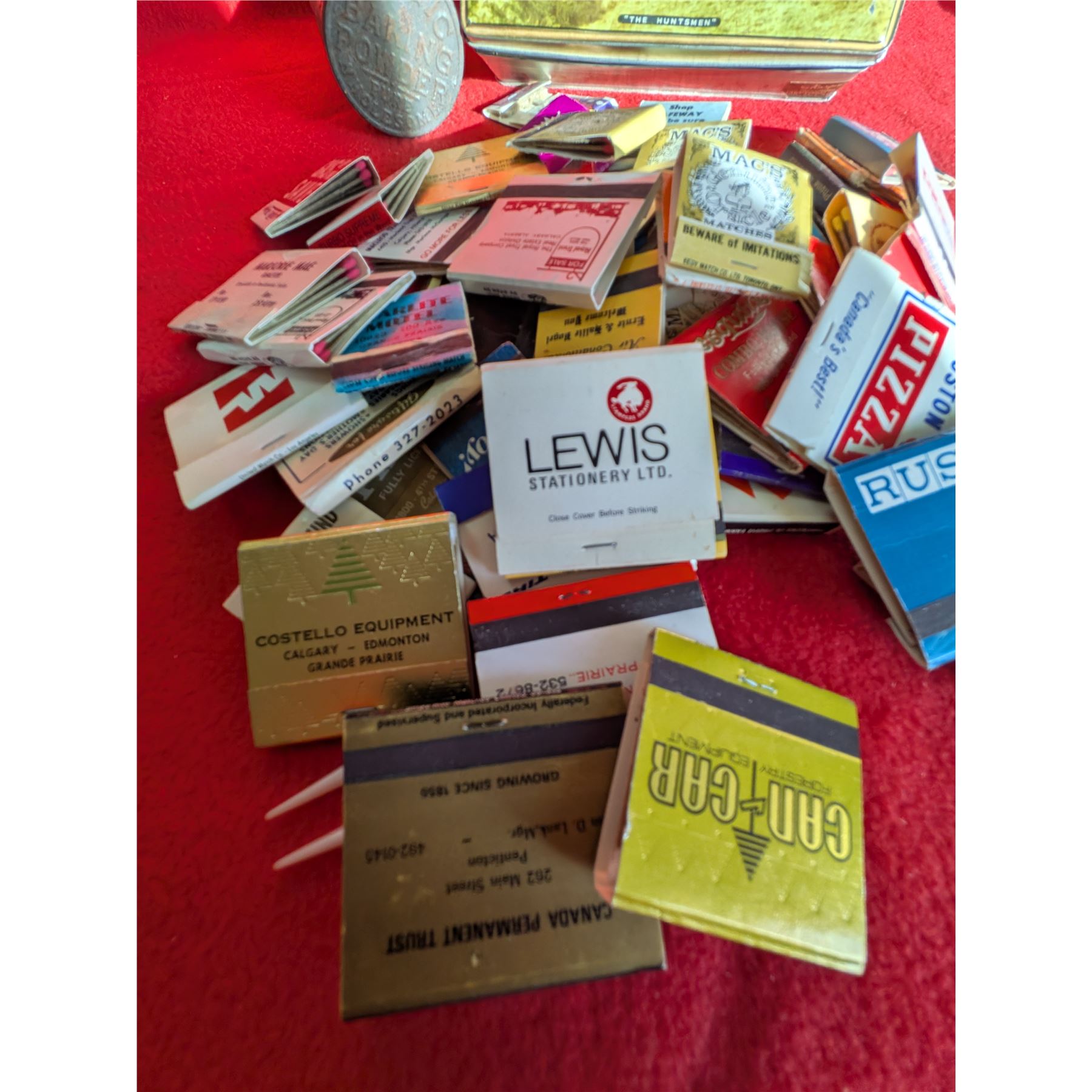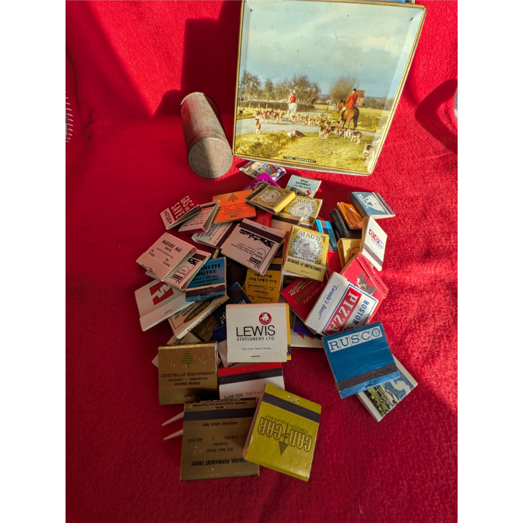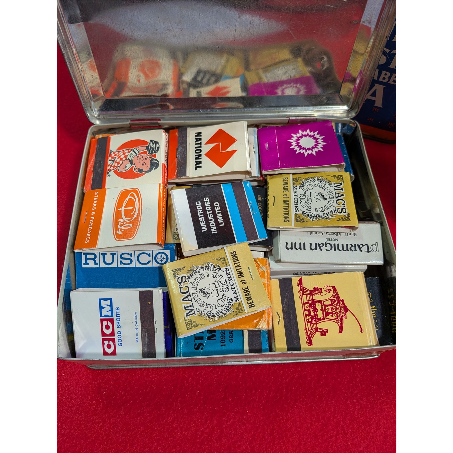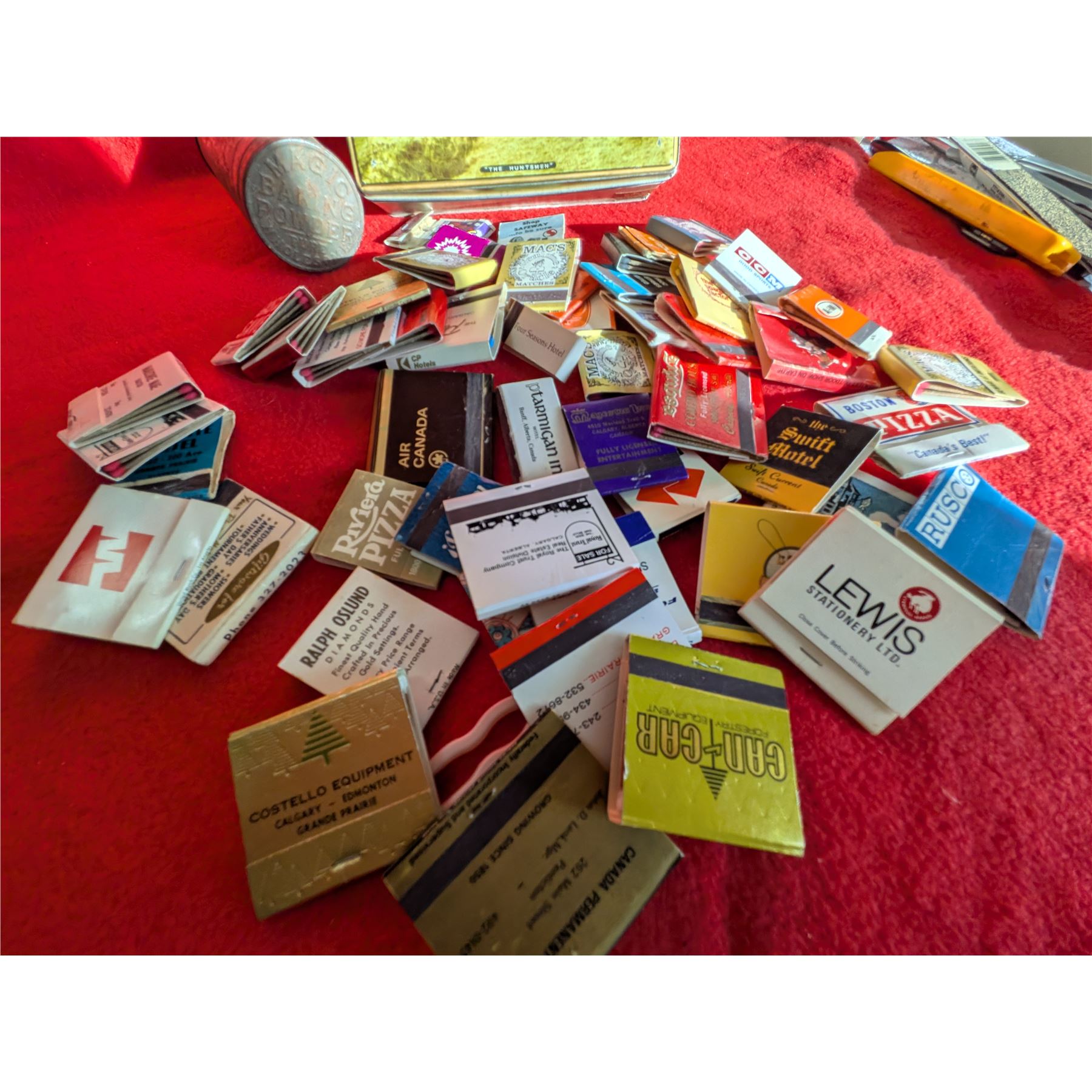 ANTIQUE COLLECTIBLE (5) CANS & vintage Matchbook collection