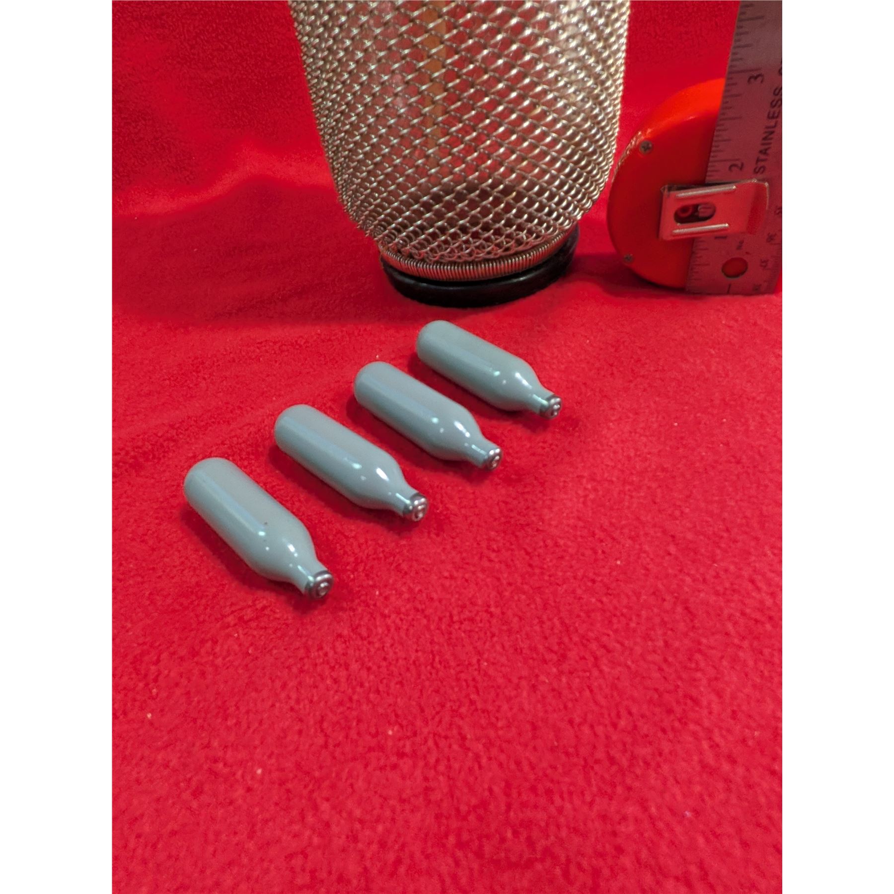Includes the bottle, a stem tube, a dispenser head with a lever, and a screw-mount holder for a CO2 cartridge and 4 New CO2 cartridges