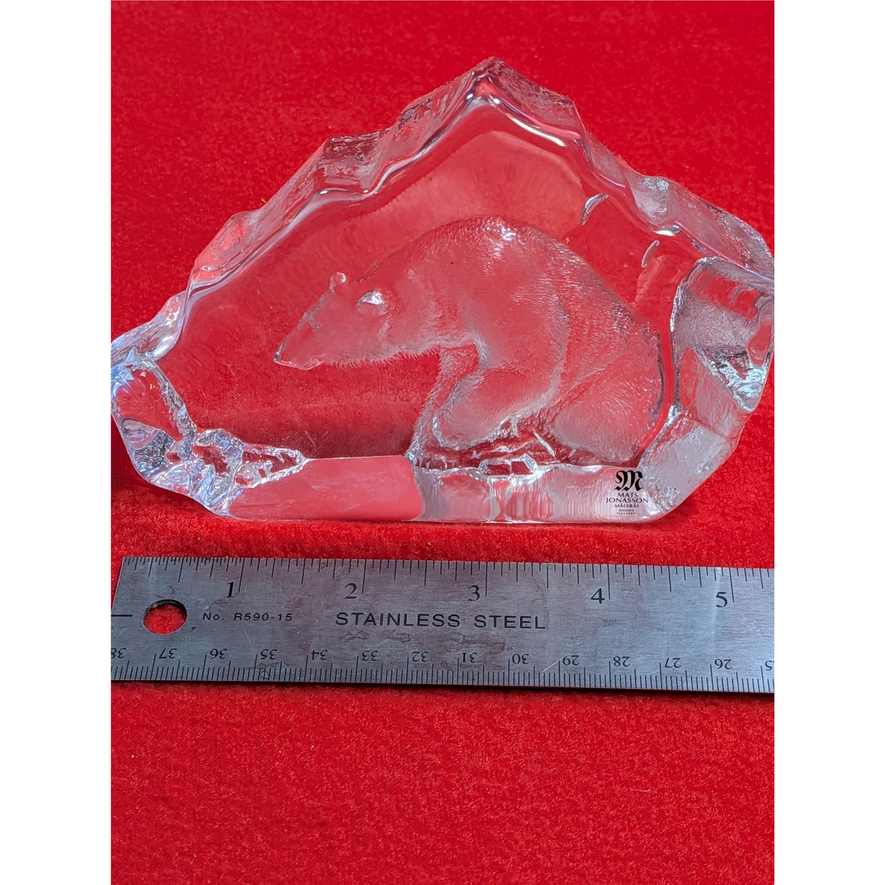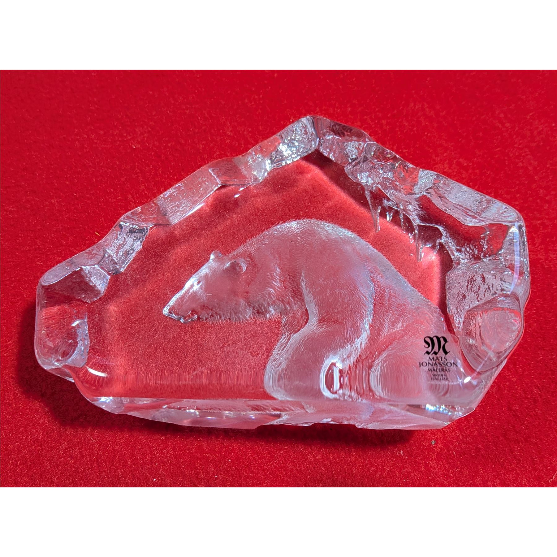 Collectible Mats Jonasson crystal sculpture of a polar bear, from the "Wildlife" series produced in Målerås, Sweden.