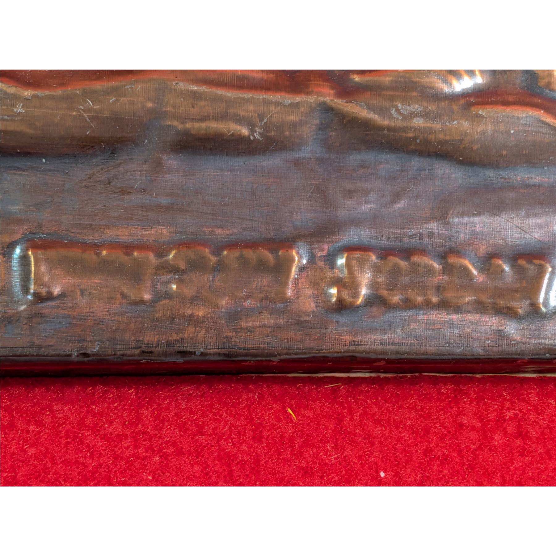 Lot 57 Vintage copper or brass relief desert caravan scene, "Orientalist" art.