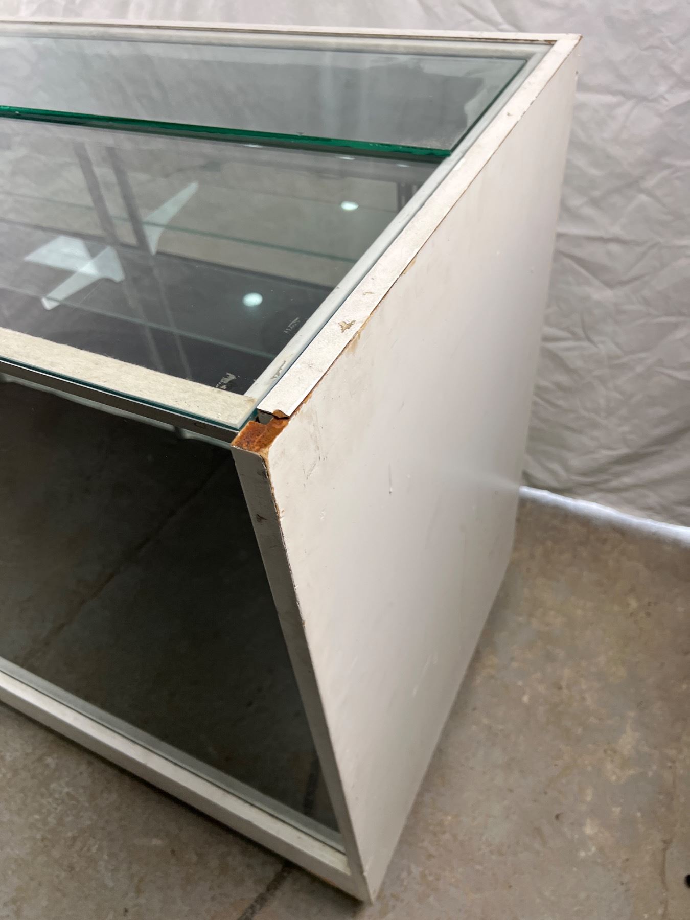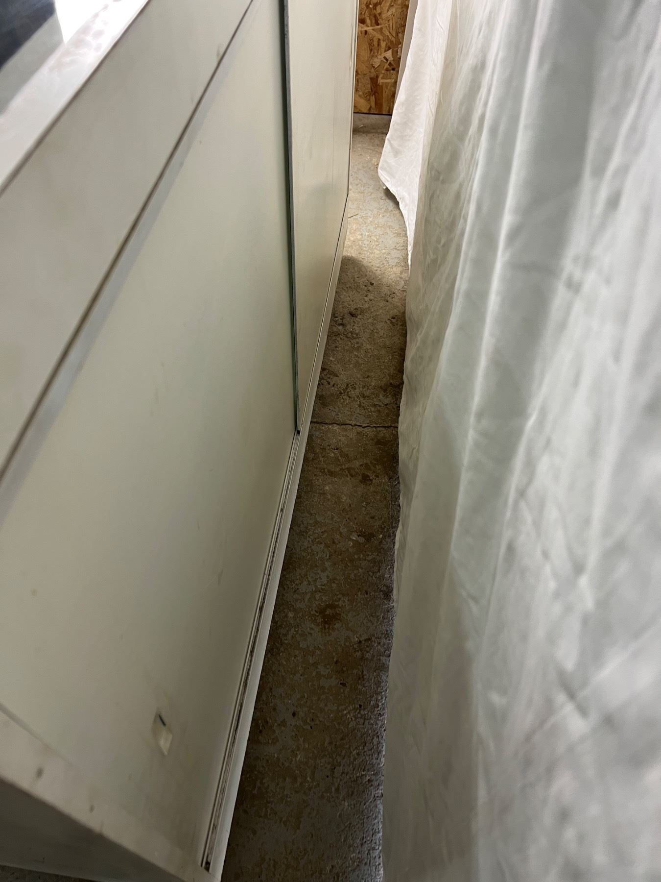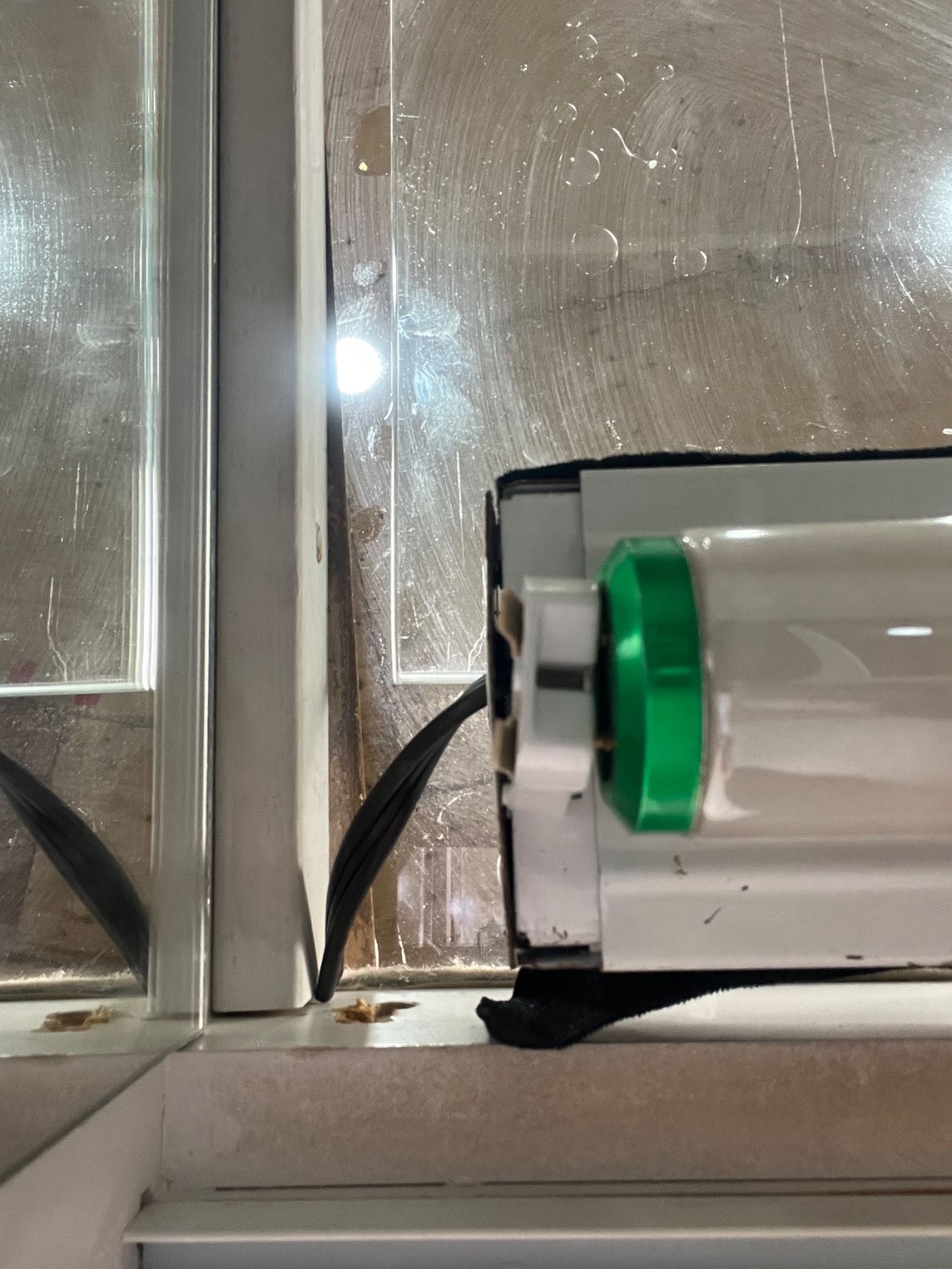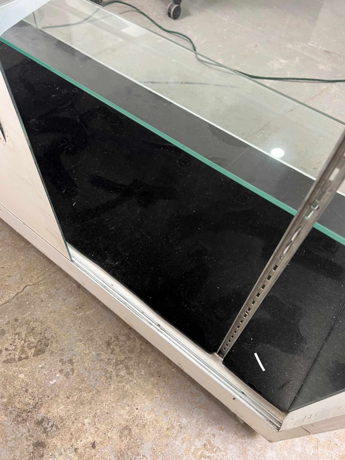 The trim is chipped on one corner and one side needs to be re-glued, cord for the interior light has been cut,
