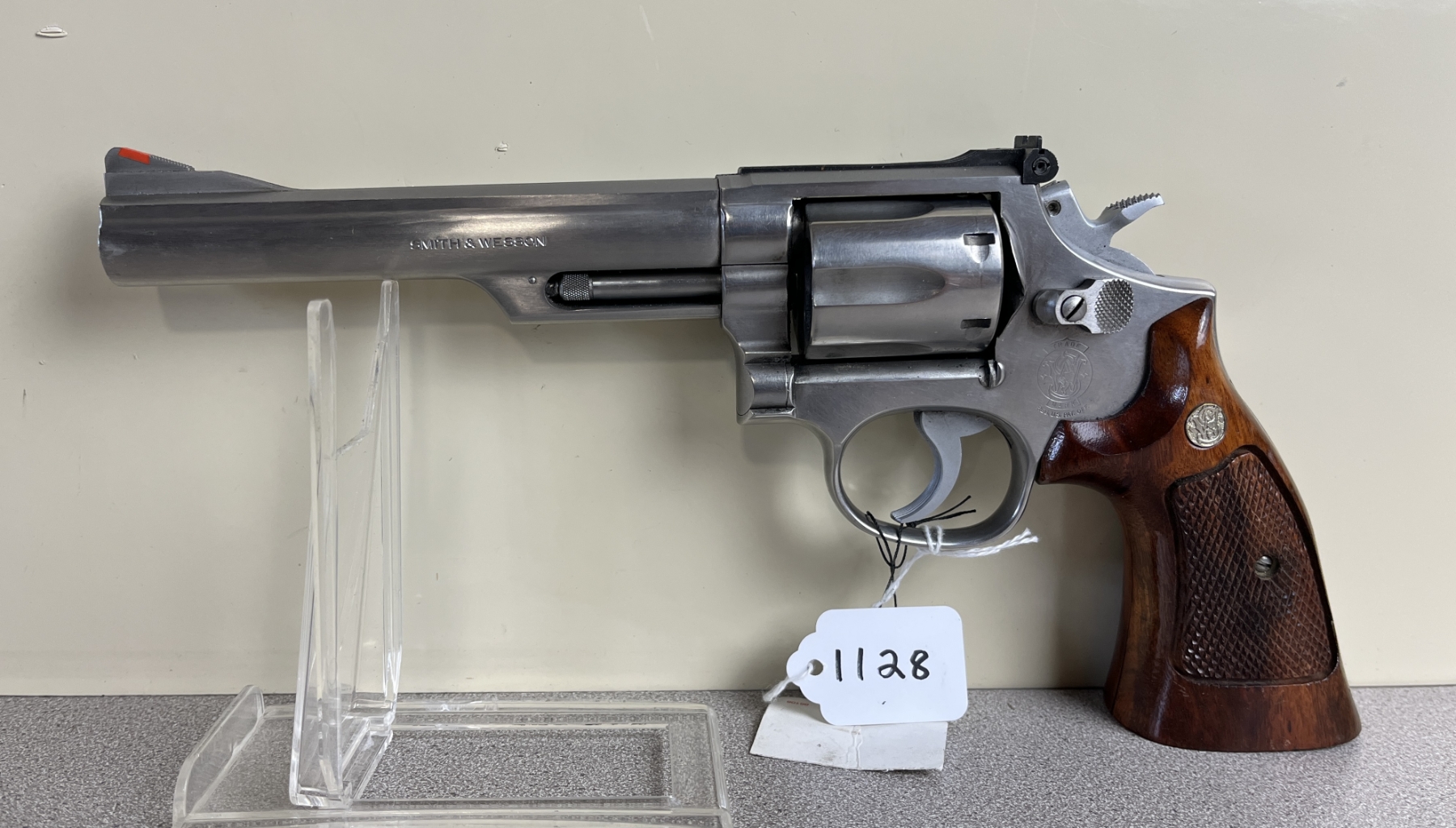 CONDITION: G-VG OVERALL INCL BORE. TIMING AND LOCKUP VG IN DOUBLE AND SINGLE ACTION. SPECS: 154MM BBL. STAINLESS FINISH. 6 SHOT REVOLVER. EXTRAS: NONE. S/N: 308K546