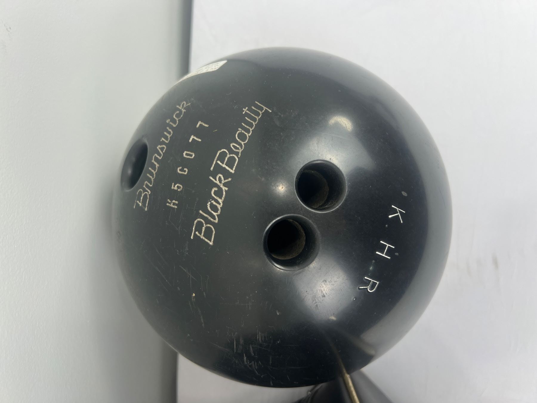 Brunswick Black Beauty bowling ball no. K5C077- Bowling ball weighs approximately 15lbs