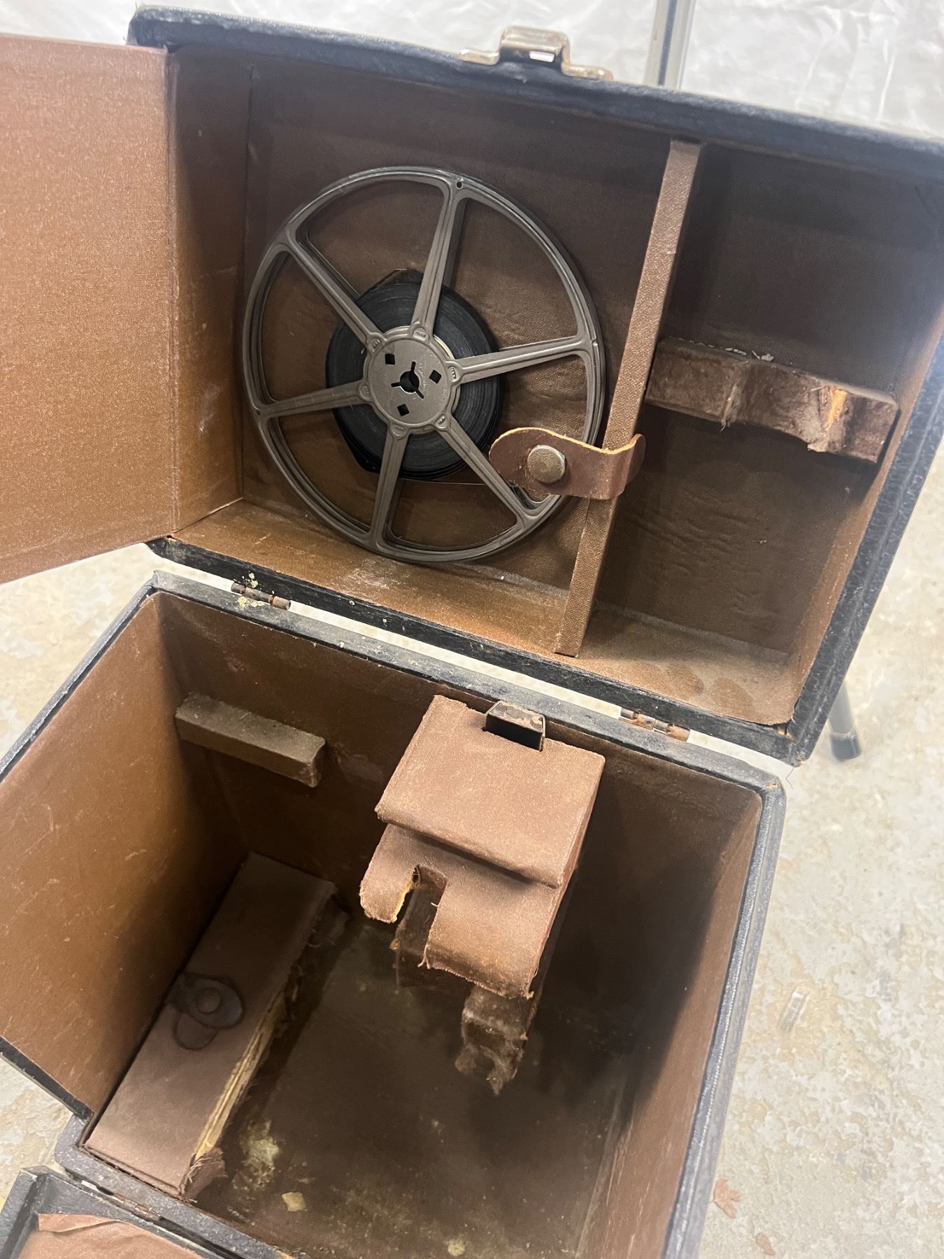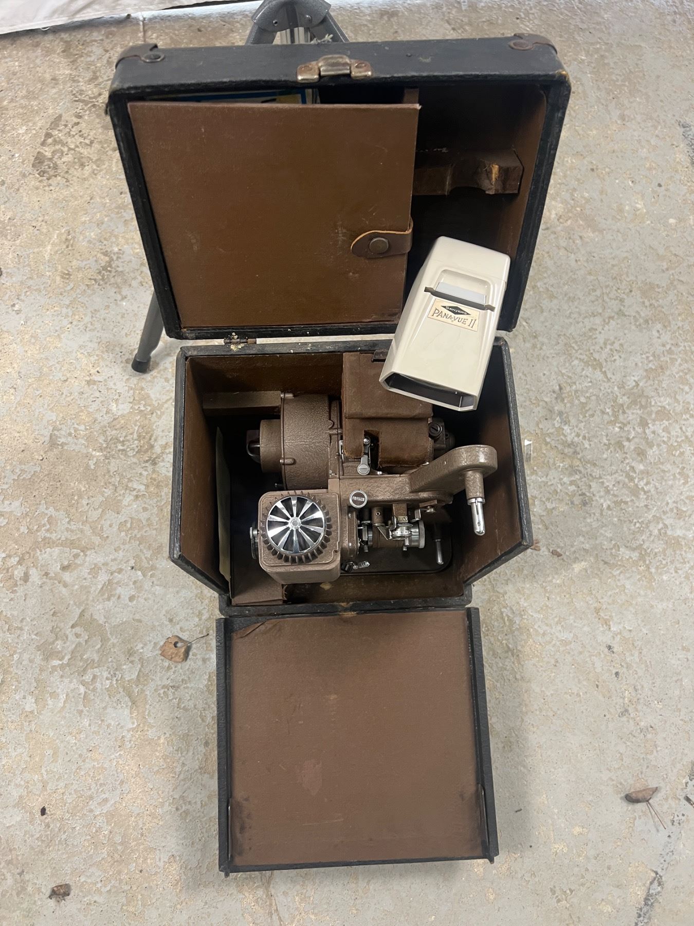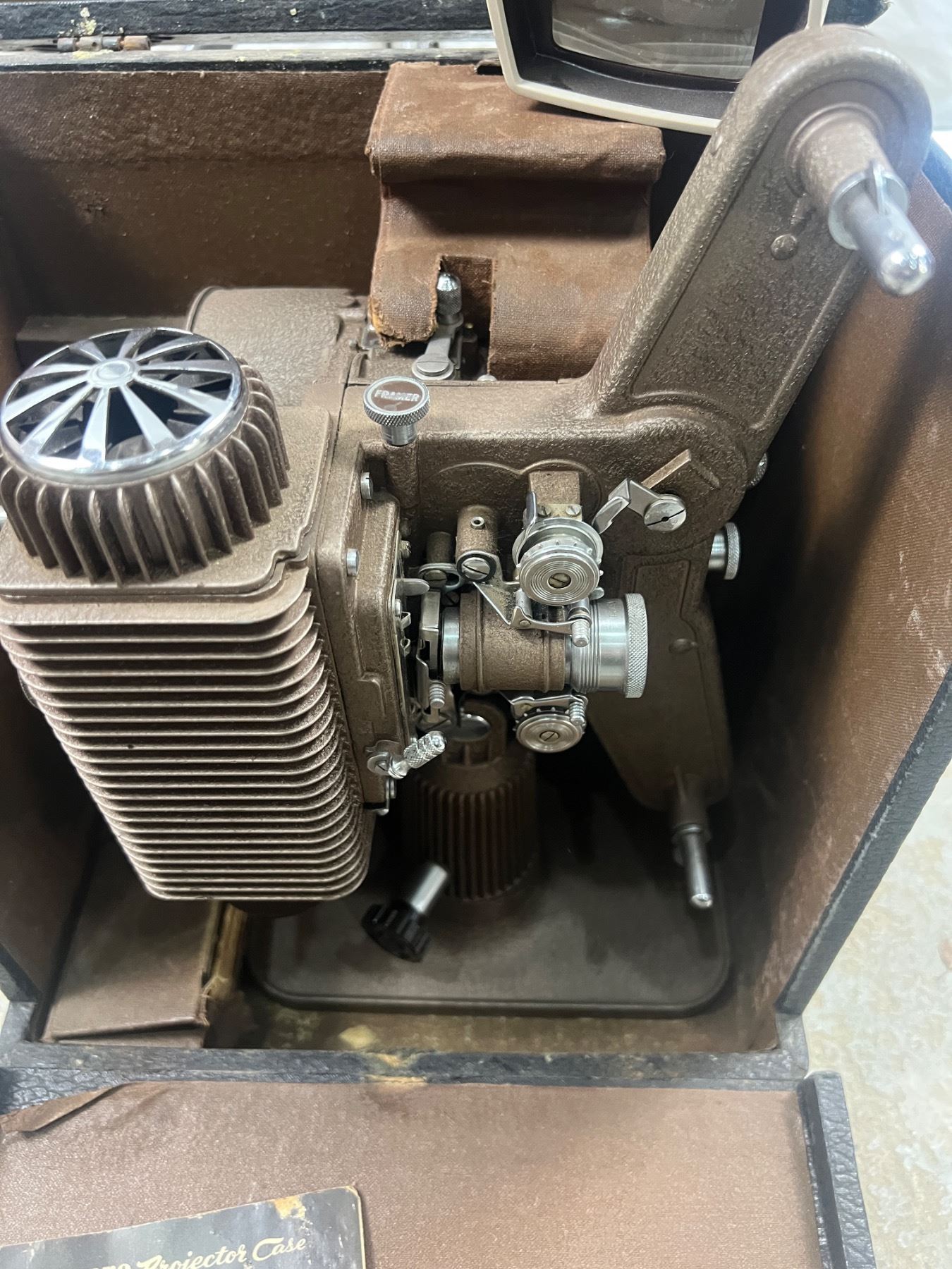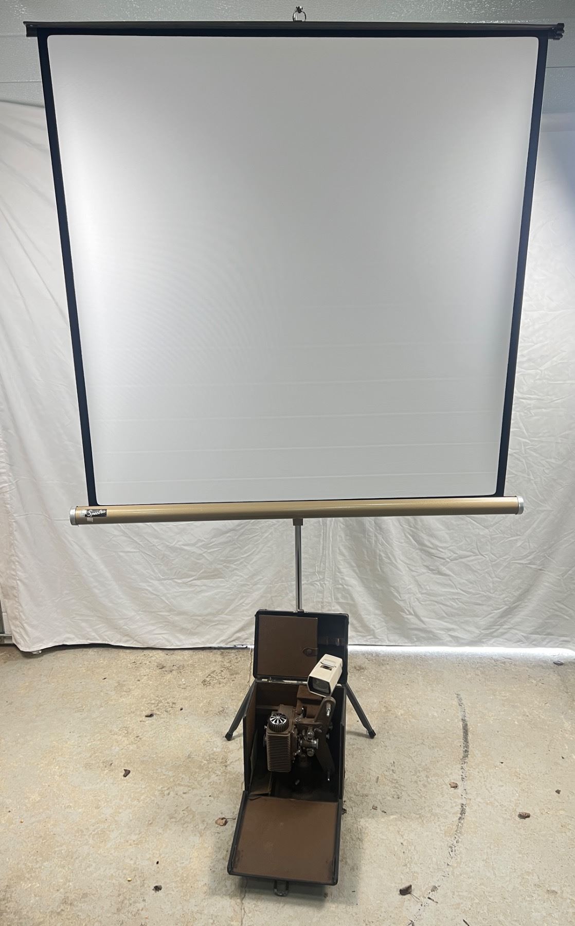 Includes a Spectra projector screen (125x125cm), Revere Deluxe 8mm projector Model No. 85 (not tested - missing power cord)