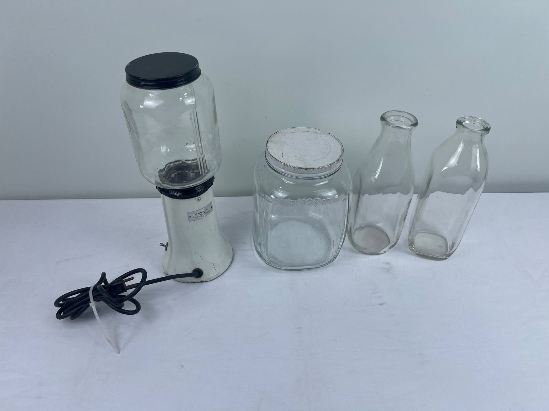 Includes a Kitchen Aid Coffee Mill (No. A-9) has power, the glass milk bottles are 10.5"H