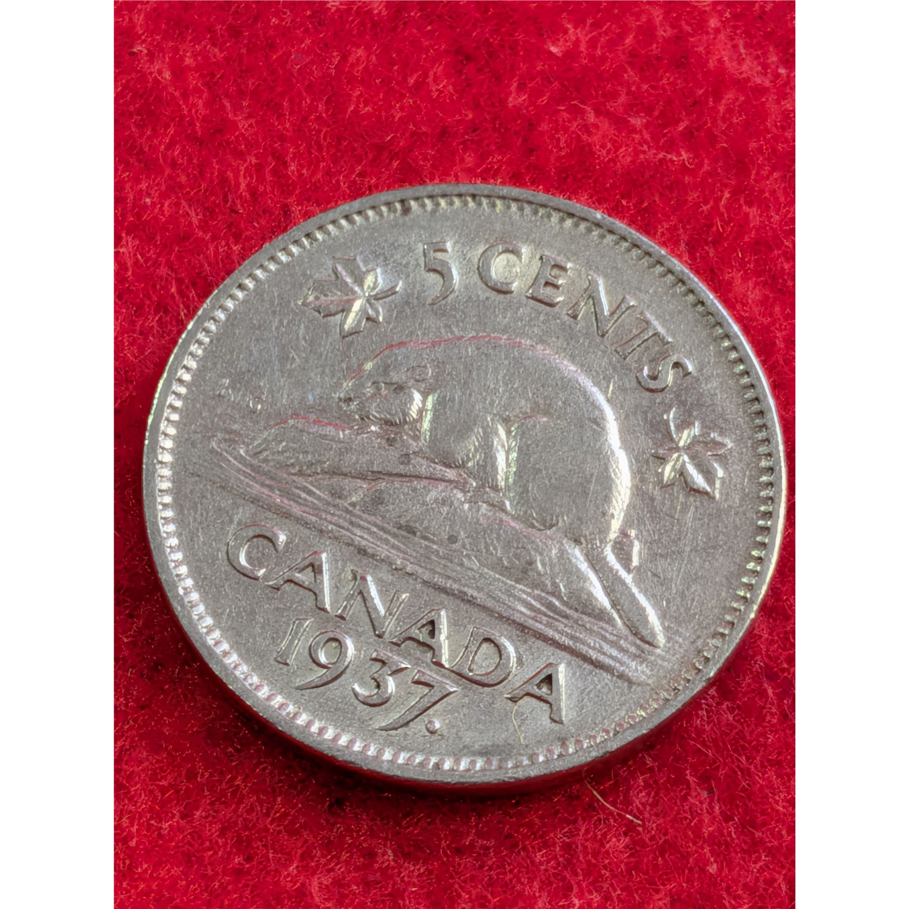 1937 Canadian 5¢ coin. Circulated Condition