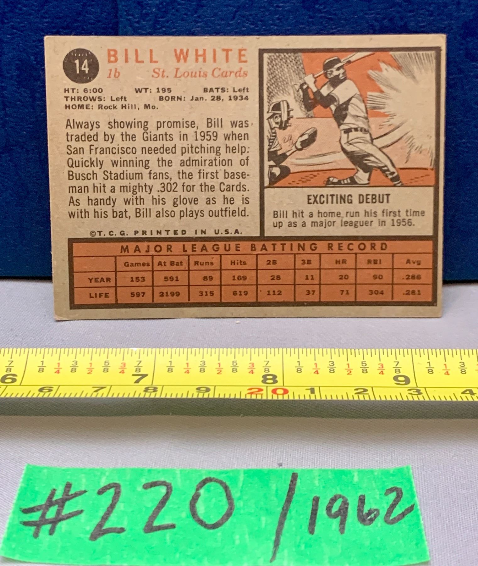 Lot 220 MLB Baseball Card - 1962 Vintage Bill White #14