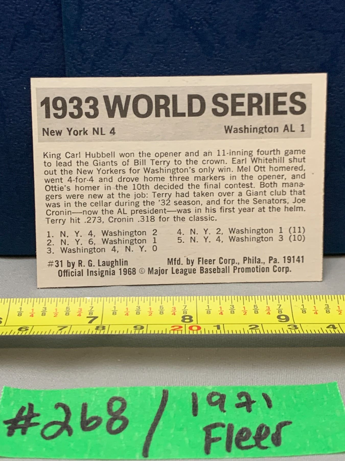 Lot 268 MLB Baseball Card - 1971 Vintage Rare World Series Fleer Cards All Mint!