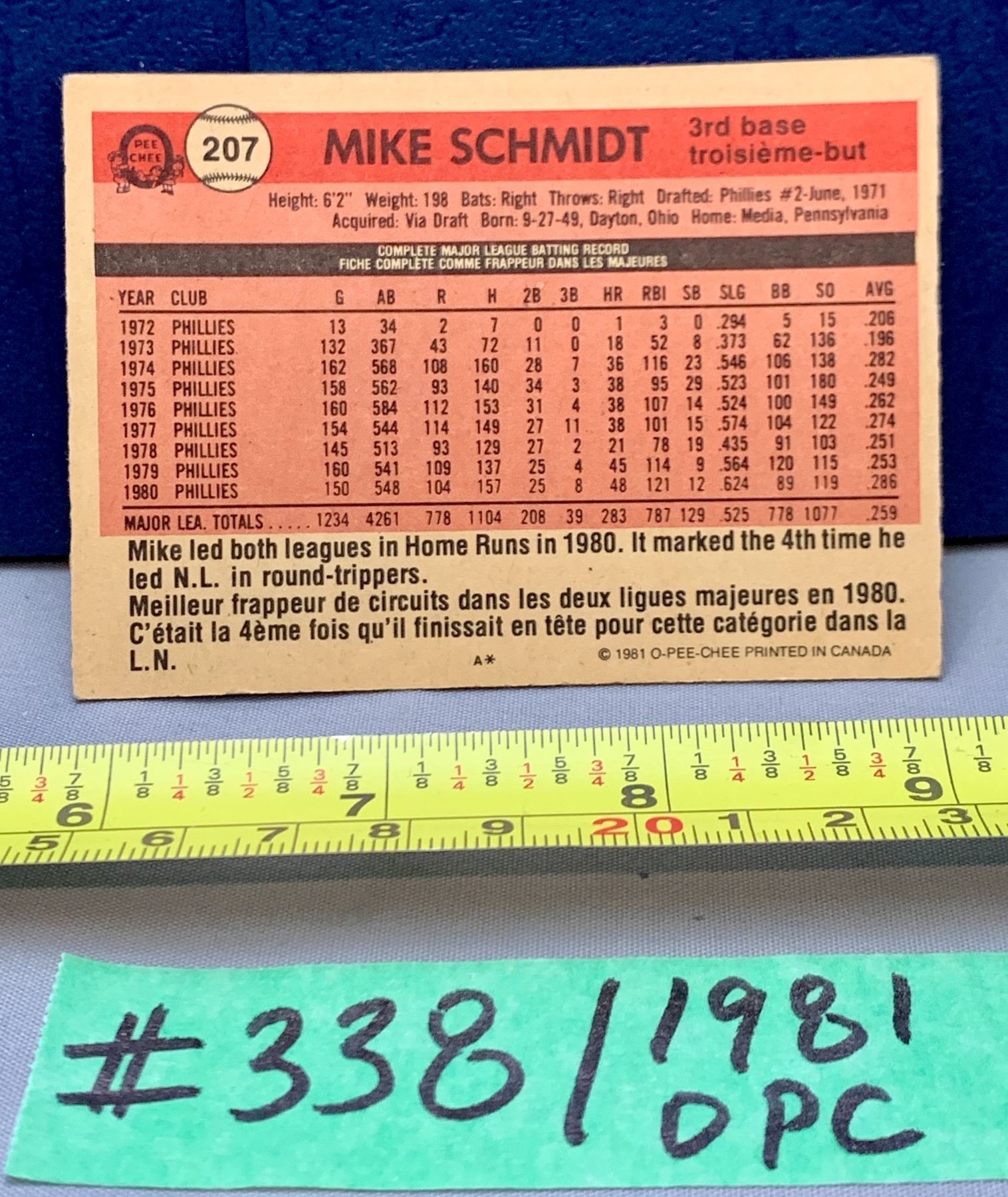 MLB Baseball Card - 1981 OPC Vintage Mike Schmidt All Star #207