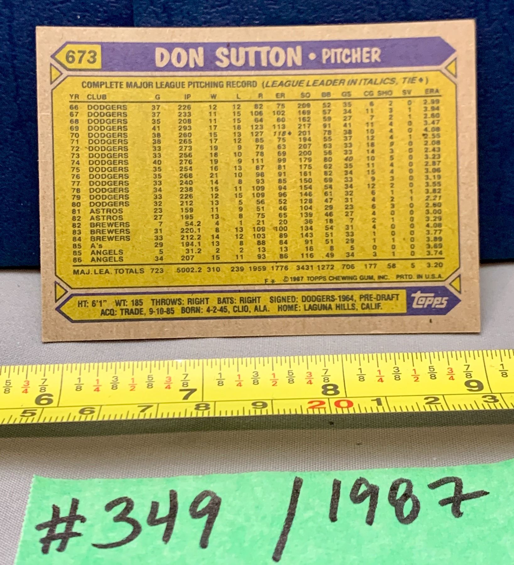 MLB Baseball Card - 1987 Vintage Don Sutton