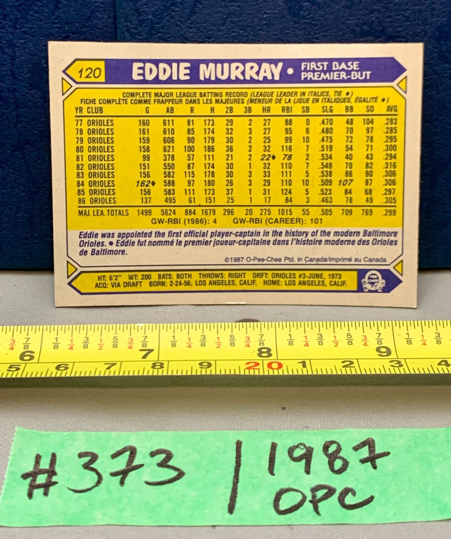 Lot 373 MLB Baseball Card - 1987 OPC Vintage Eddie Murray