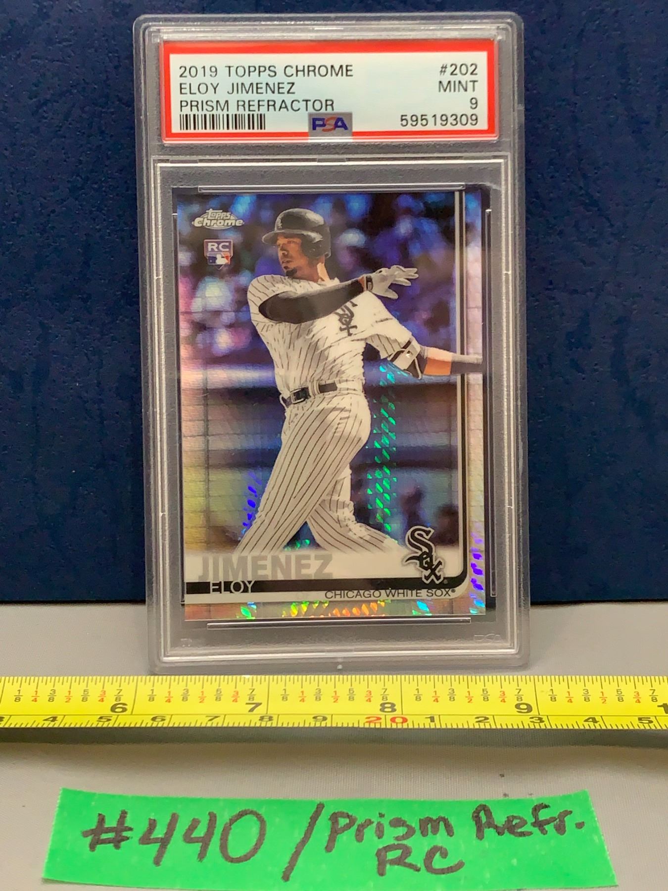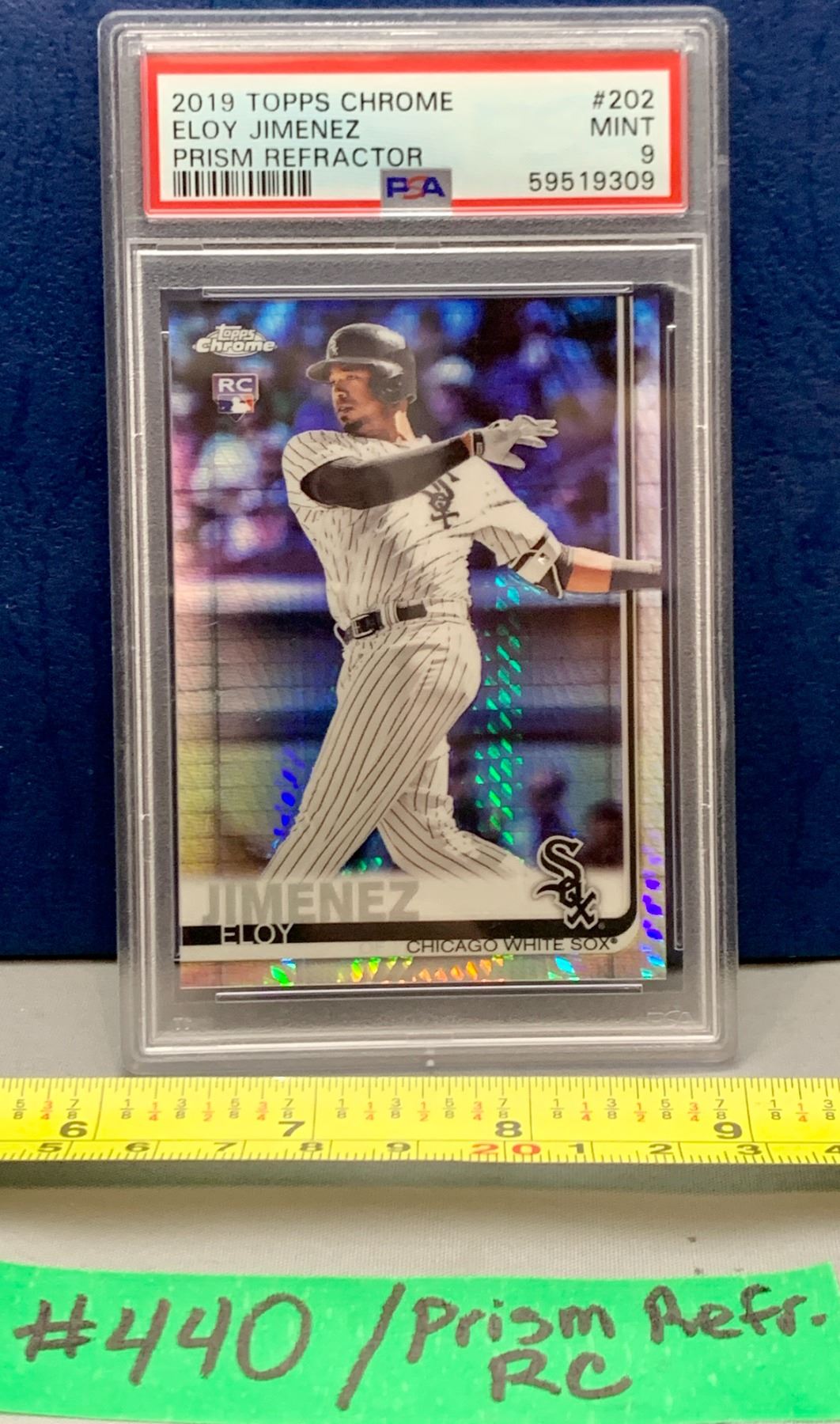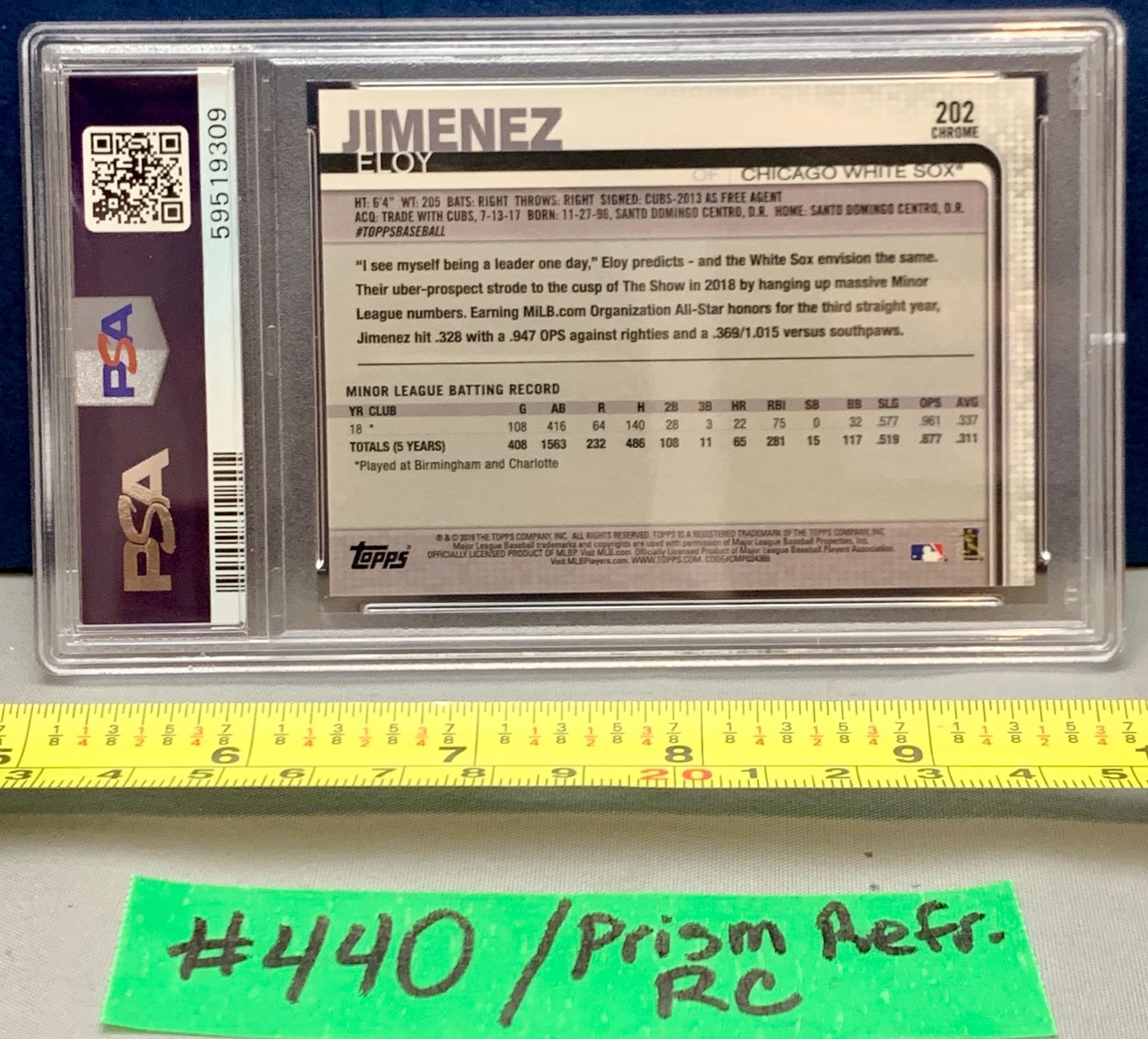 Lot 440 MLB Baseball Card - 2019 Topps Chrome Prism Refractor Elroy Jimenez Rookie Card PSA Graded 9 MINT!
