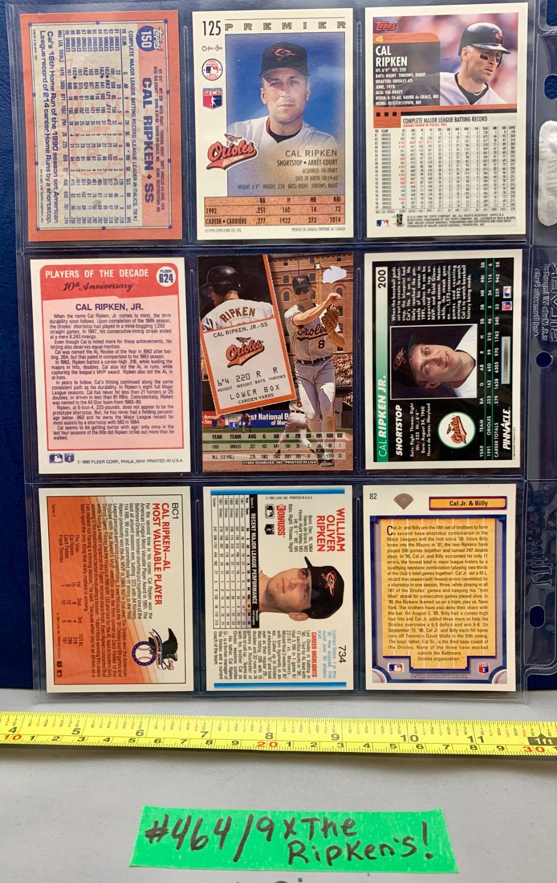 Lot 464 MLB Baseball Card - 9 x 'The Ripkens" Cards - HTF Cards!
