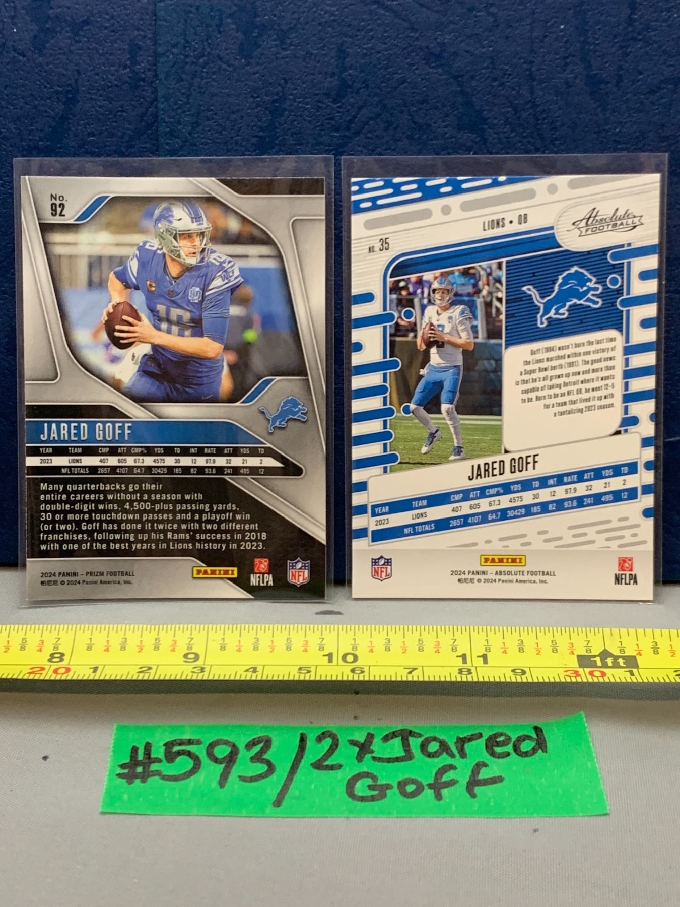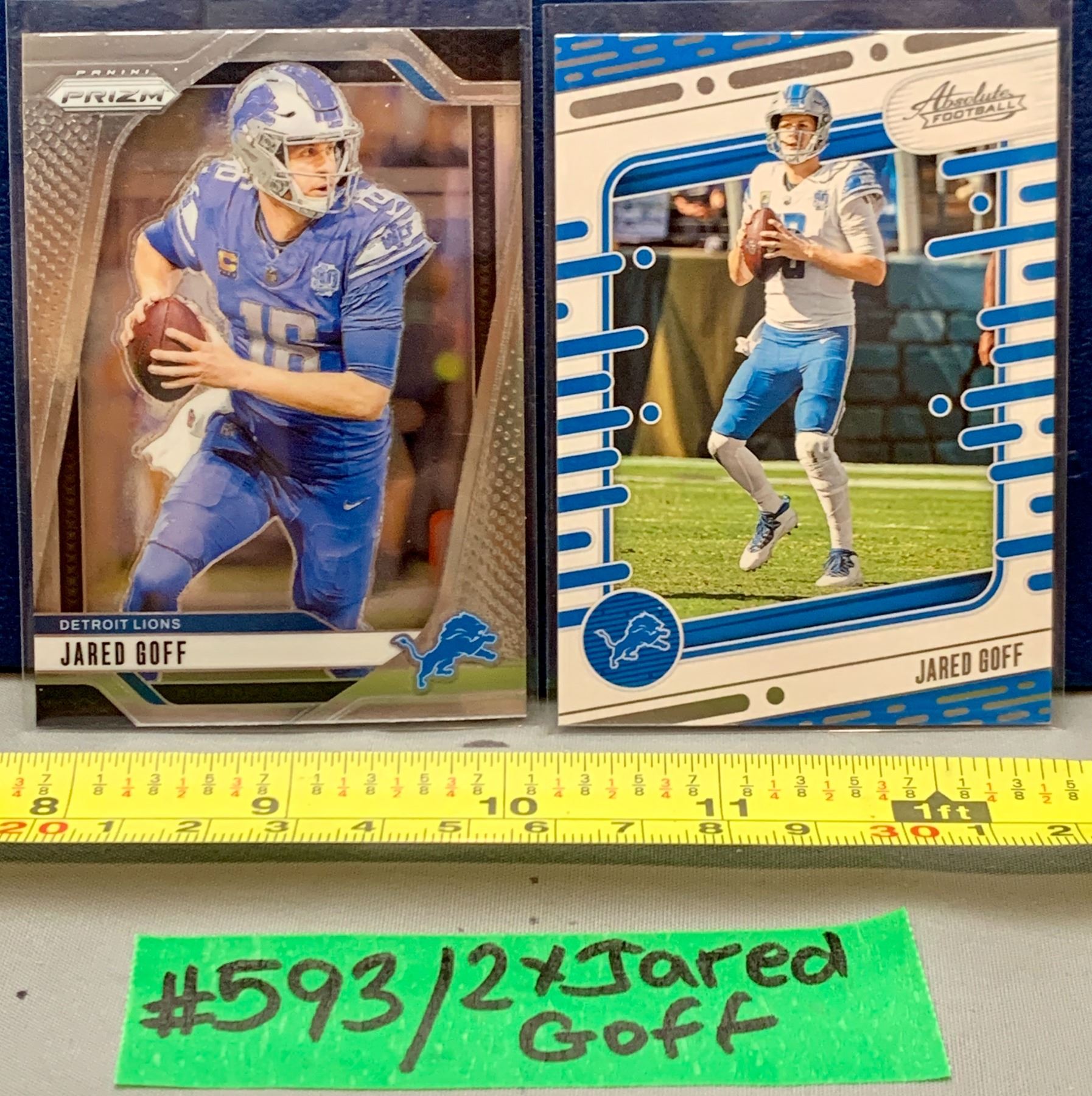 Lot 593 NFL Football Cards - 2 x Jared Goff Lions QB