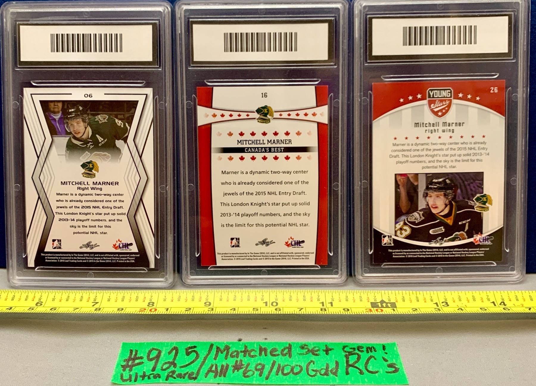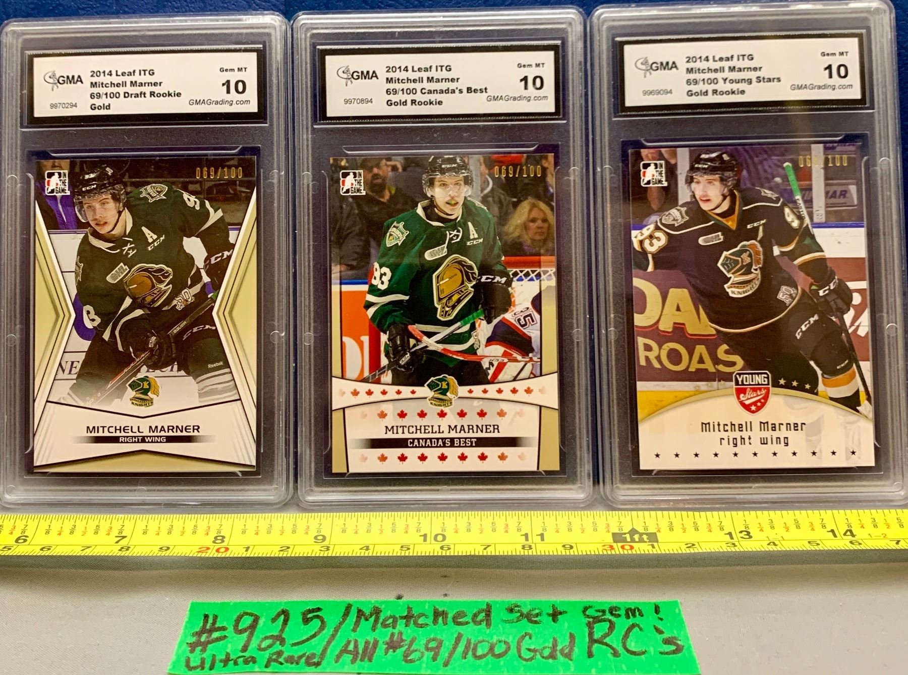 Lot 925 NHL HOCKEY - 3 x Mitch Marner GOLD Set RARE Graded 10 All 3 Numbered #069/100 Rookie Cards!