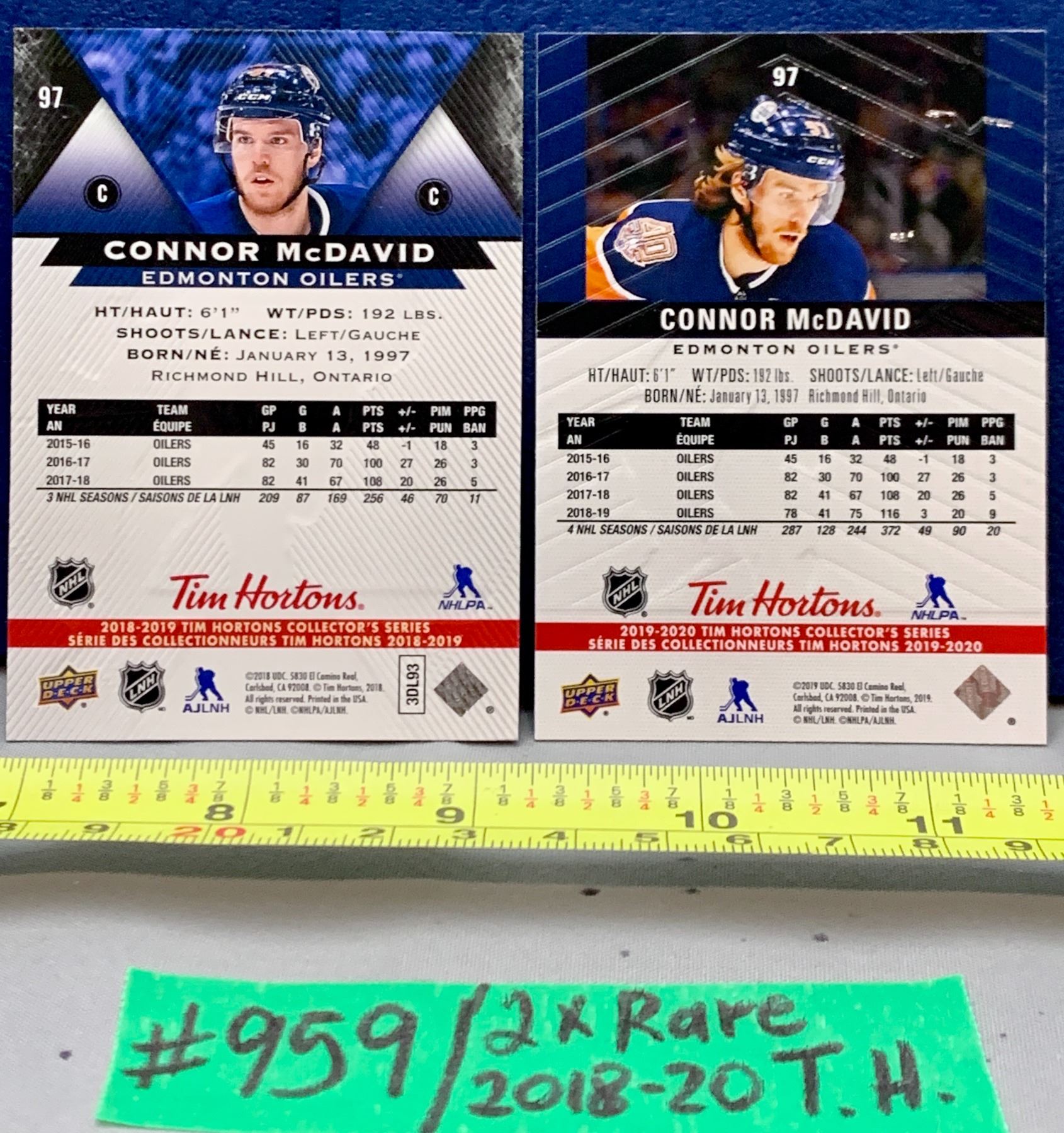 Lot 959 NHL HOCKEY - 2 x Tim Hortons Foil Holo Connor McDavid Cards