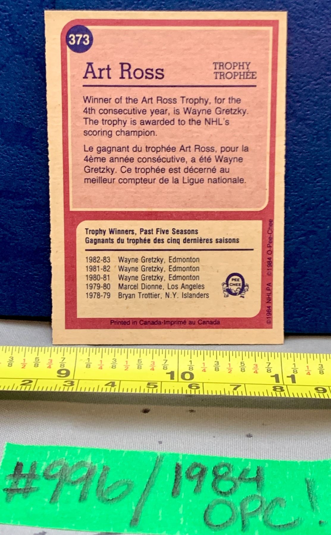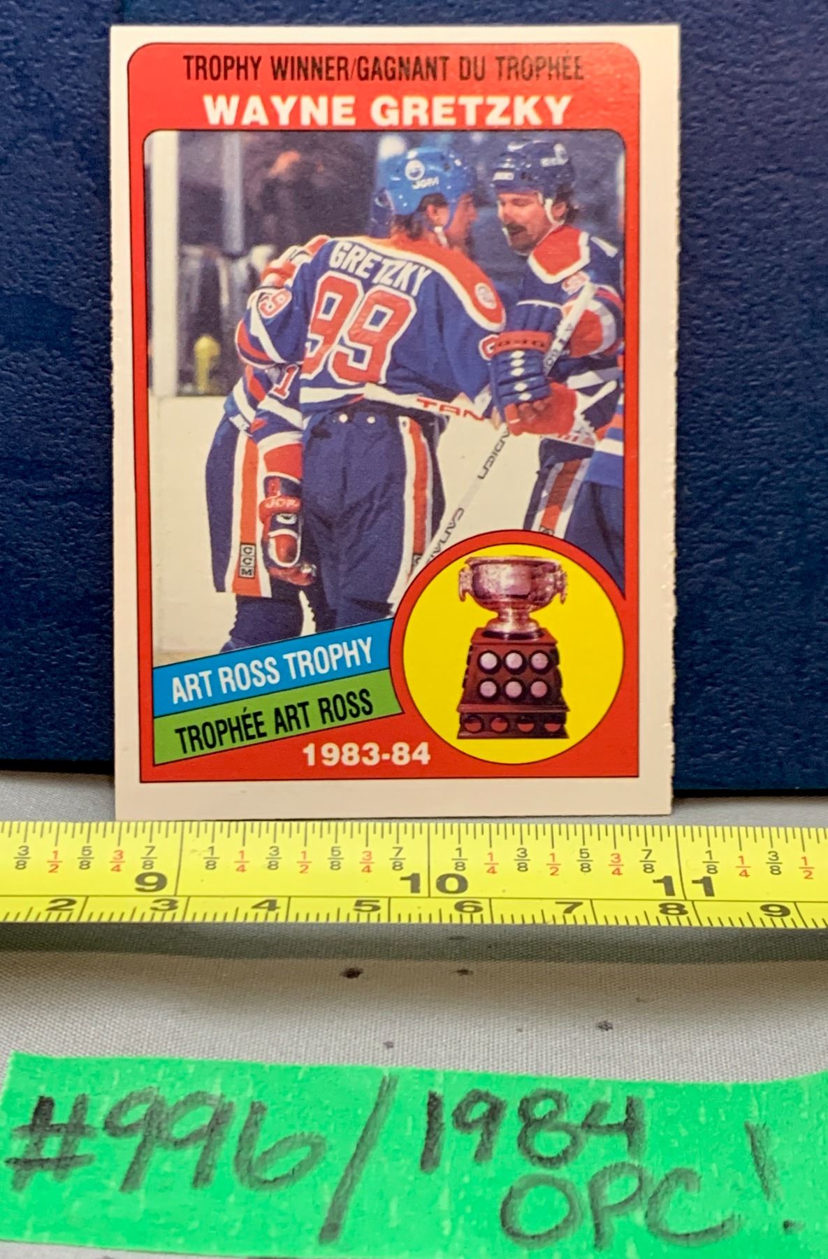 Lot 996 NHL HOCKEY - Wayne Gretzky Vintage OPC 1984 Art Ross Trophy Card! Great Card!