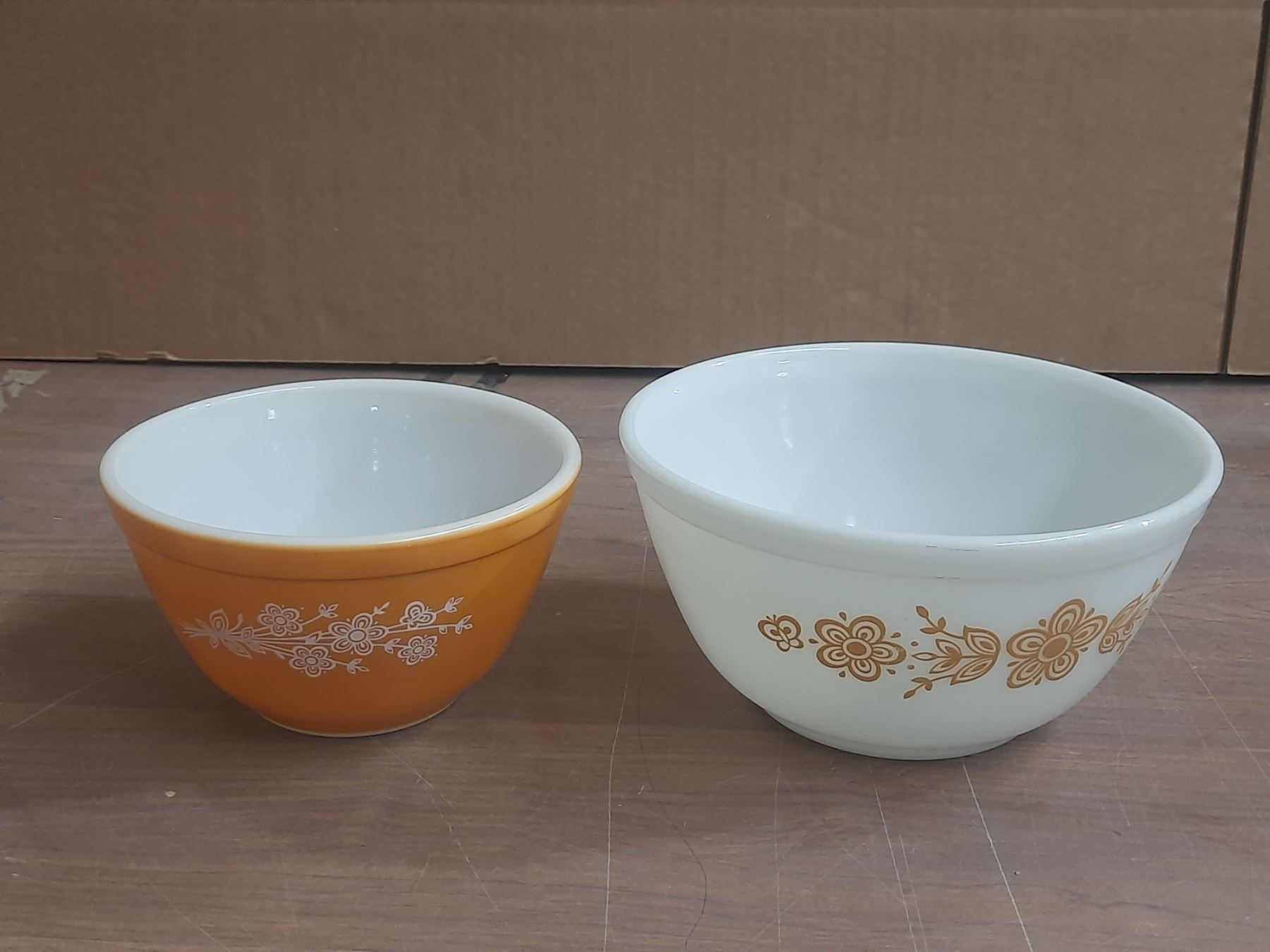 (2) Pyrex Mixing Bowls - Butterfly Gold Pattern.