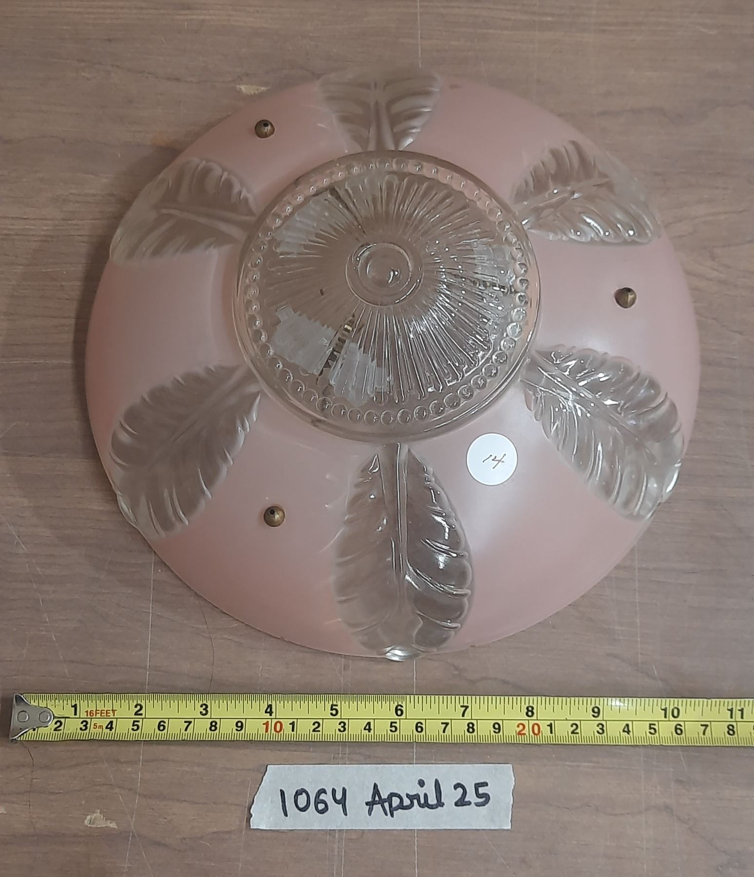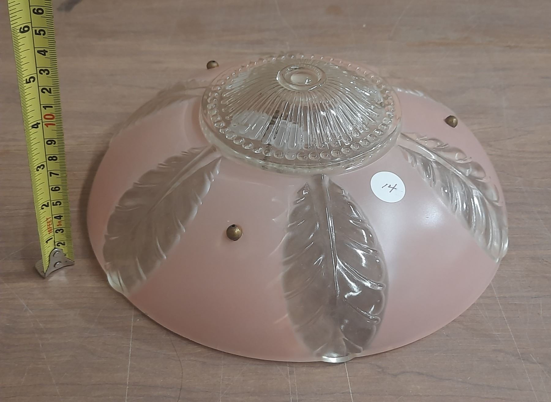 Lot 1064 Vintage Art Décor Pink WITH Leaf Pattern Ceiling Lamp Shade 1930-1950 Beautifull Condition.