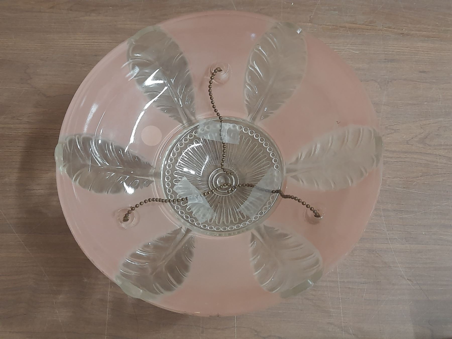Vintage Art Décor Pink WITH Leaf Pattern Ceiling Lamp Shade 1930-1950 Beautifull Condition.