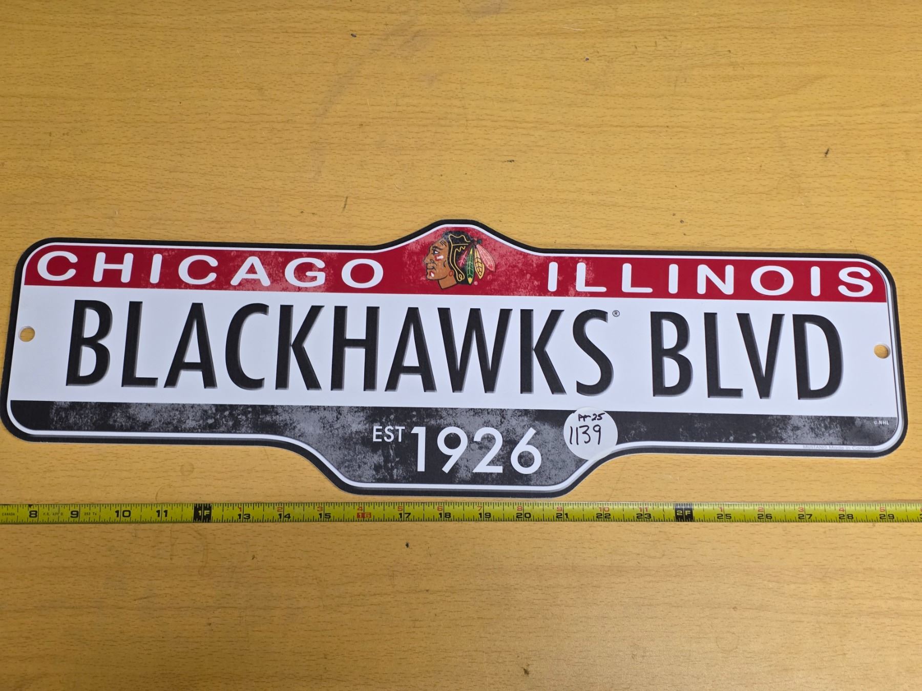 Lot 1139 Black hawks sign
