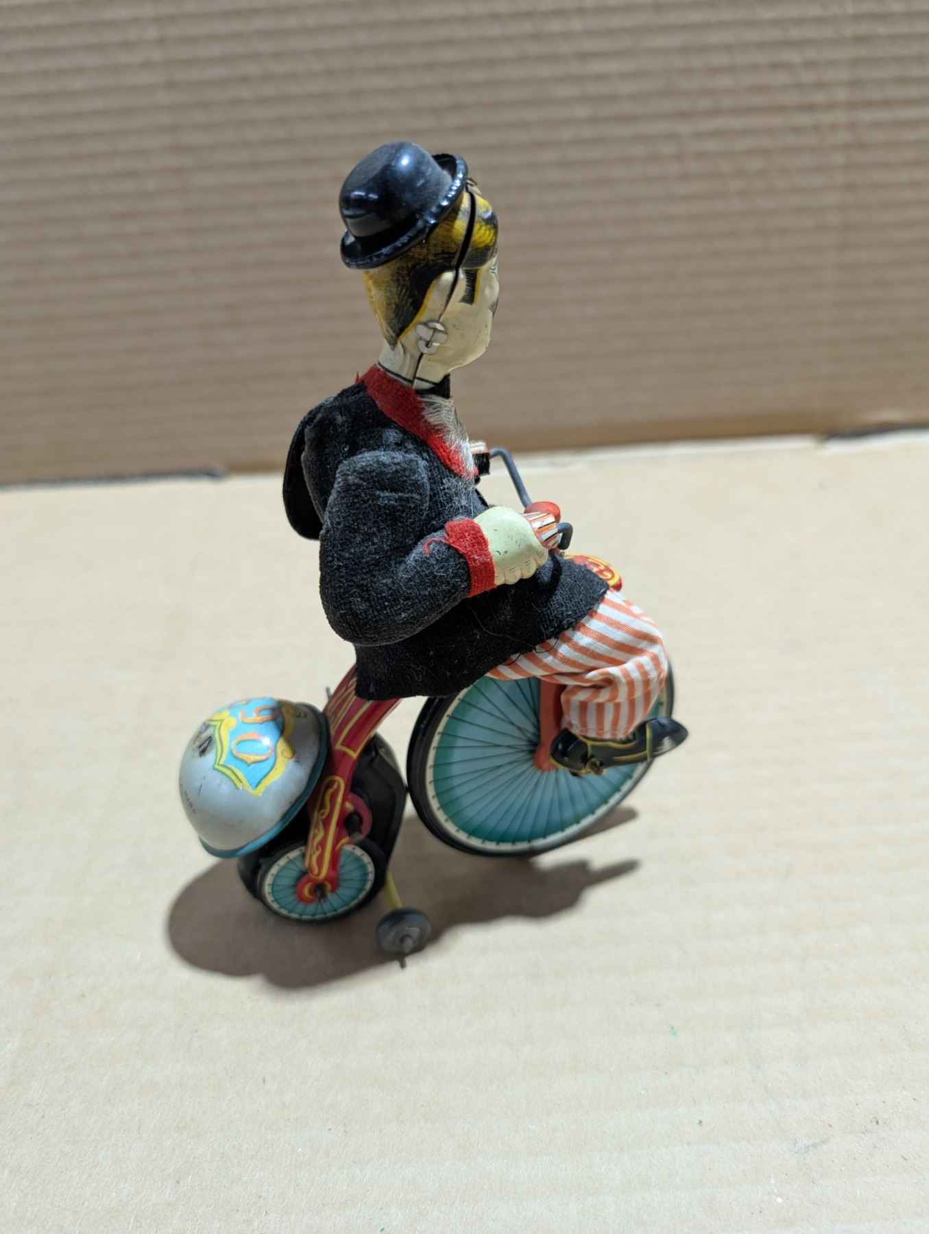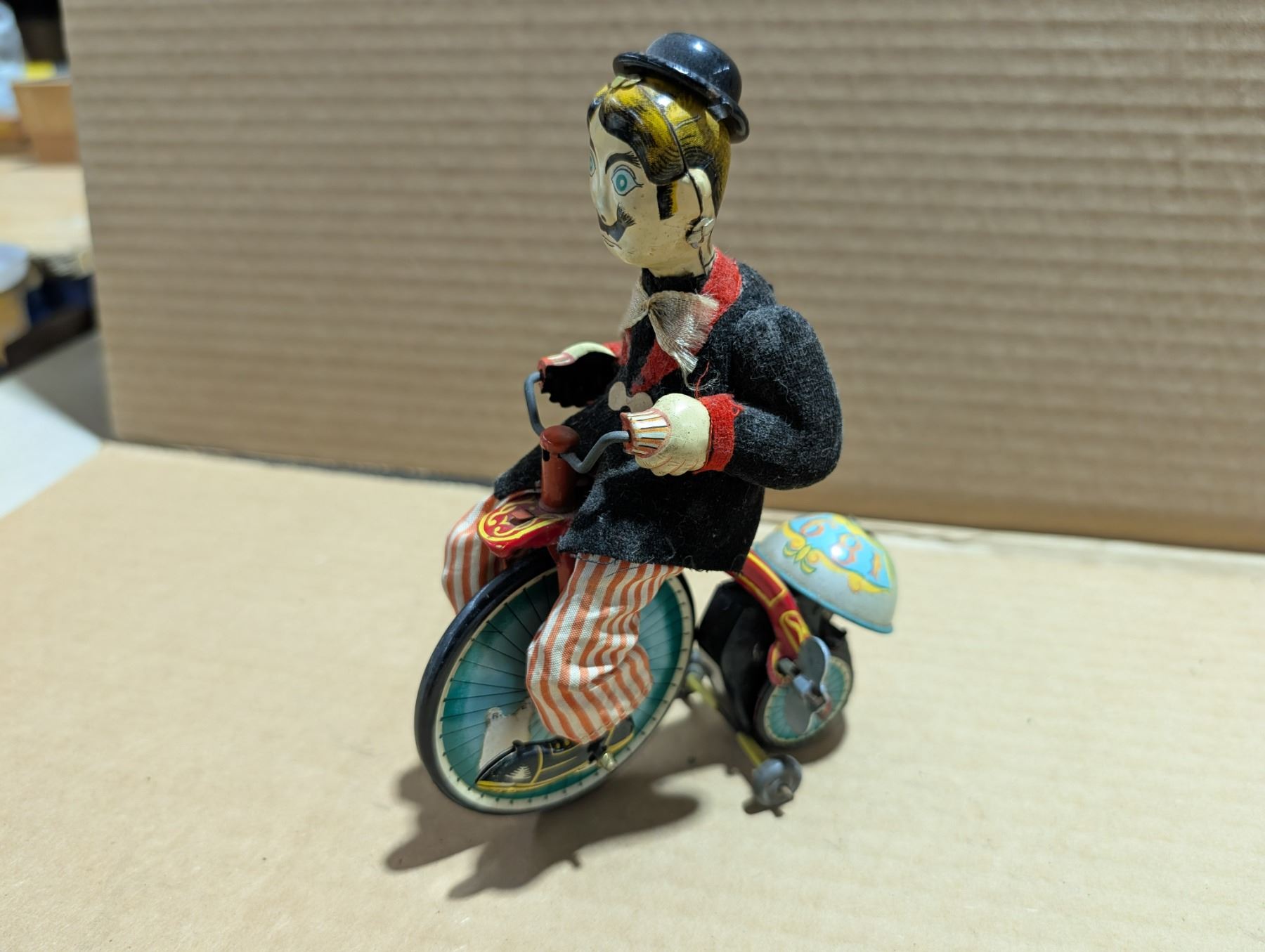Lot 1217 Vintage Made in Japan Charlie Chaplin Inspired Man on Tricycle Wind Up Toy