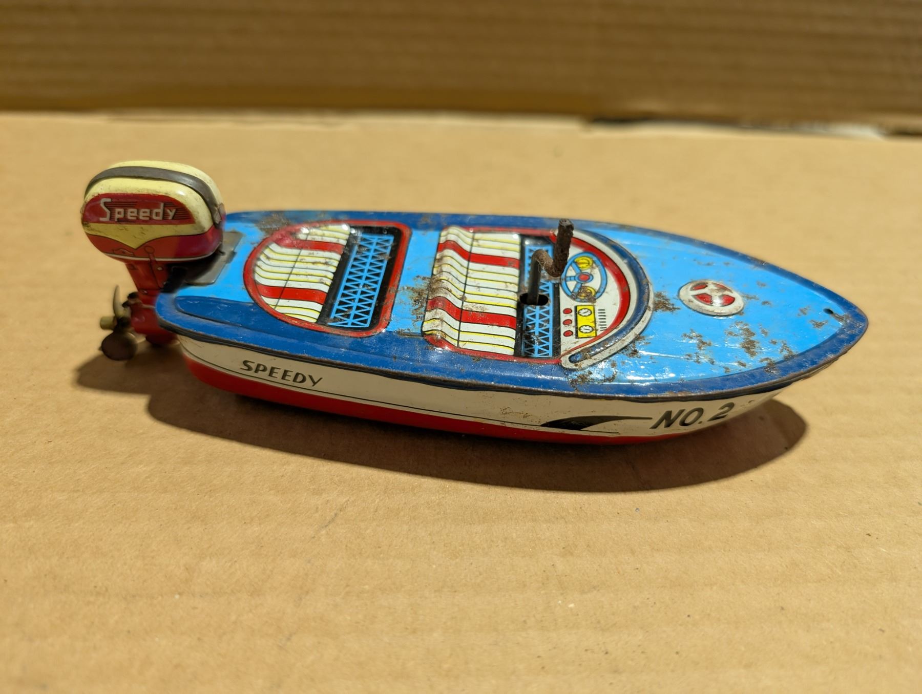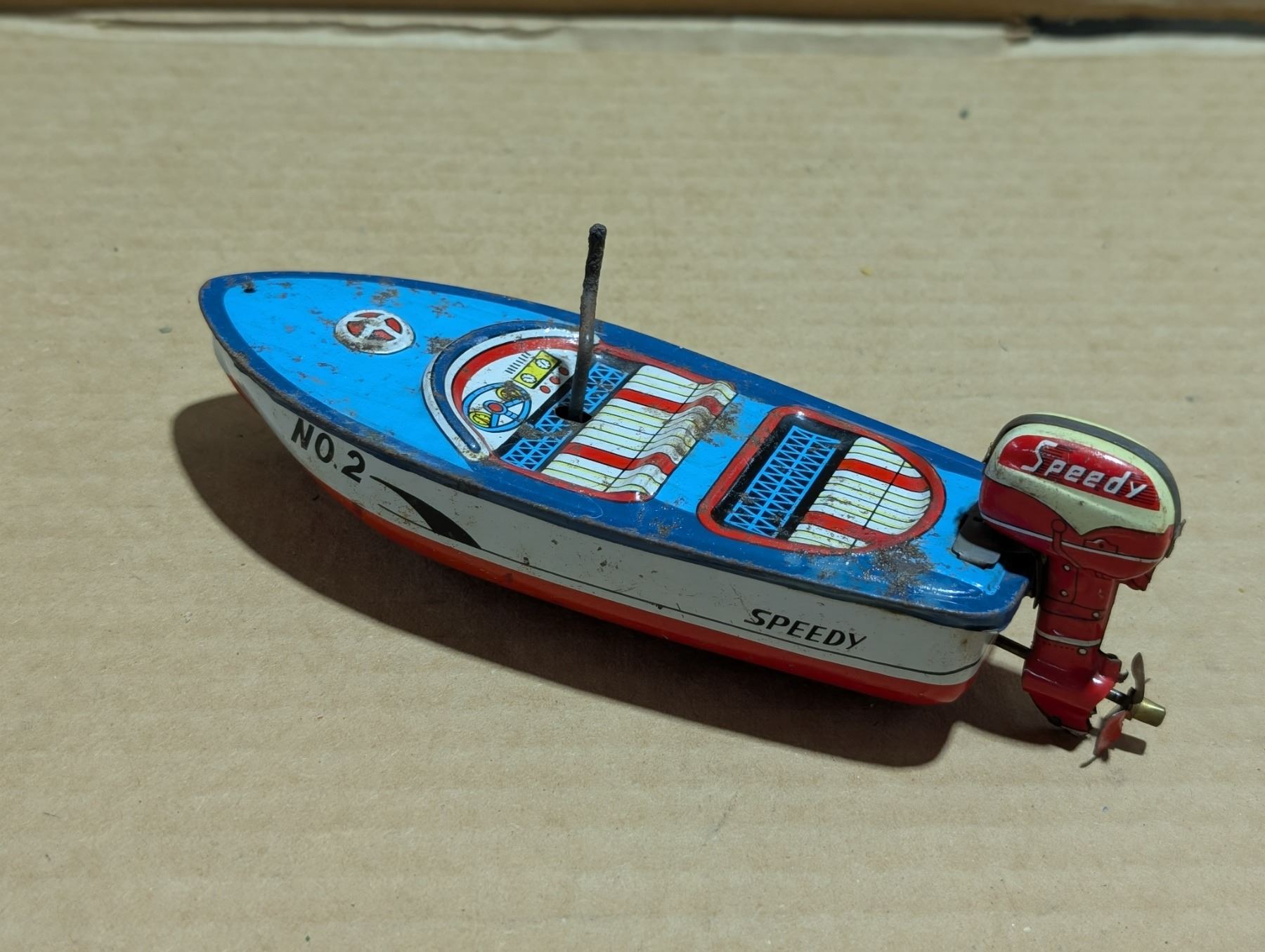 Vintage No.2 Wind up Speedy Boat Bath Toy (Works)