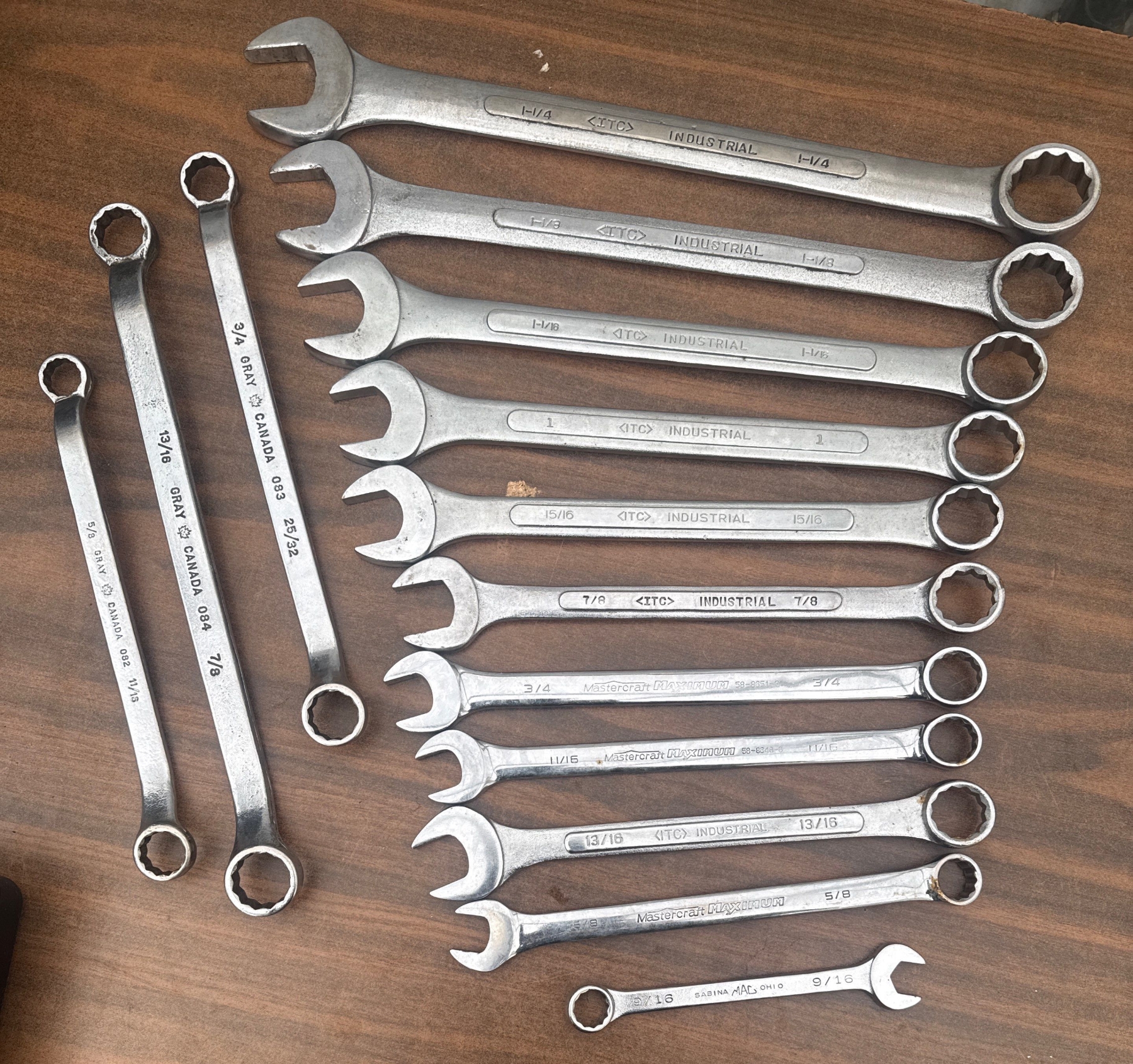 Lot 134 Industrial Combination Wrenches & Open End Wrenchs