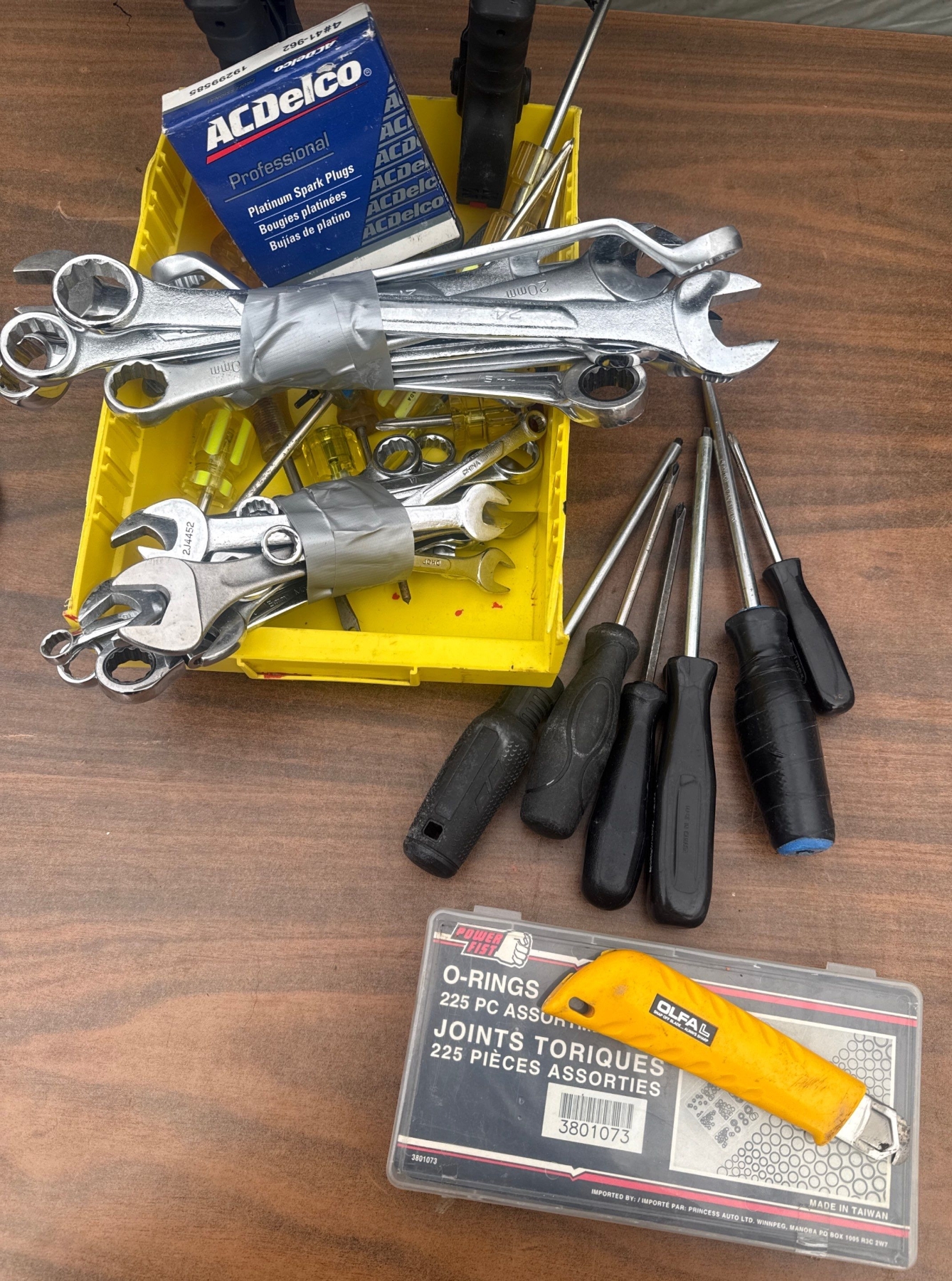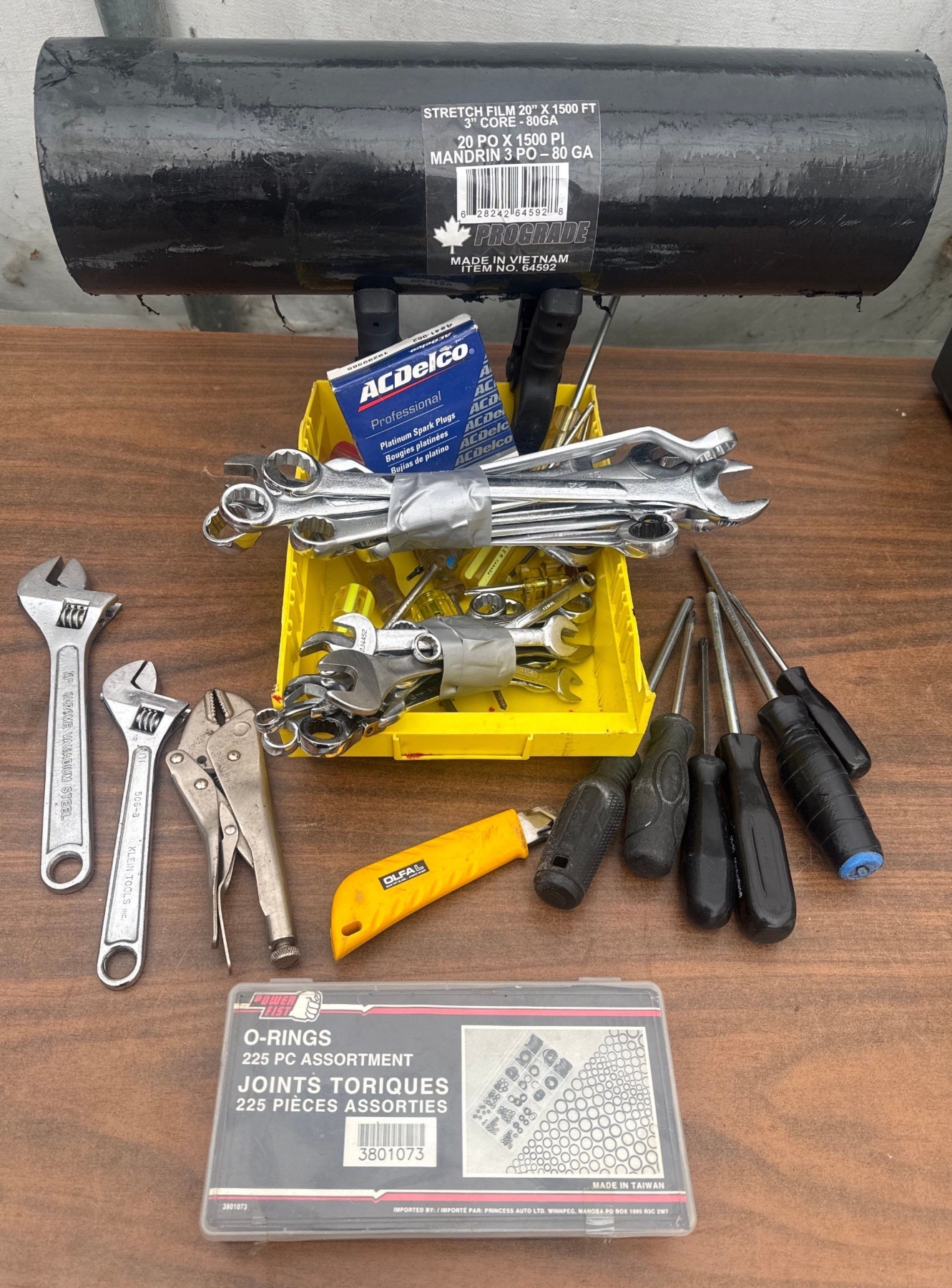 Lot 136 Variety Of Tools & Shop Suppplies - Stretch Film Wrenches Drivers Pliers & O Ring Assortment