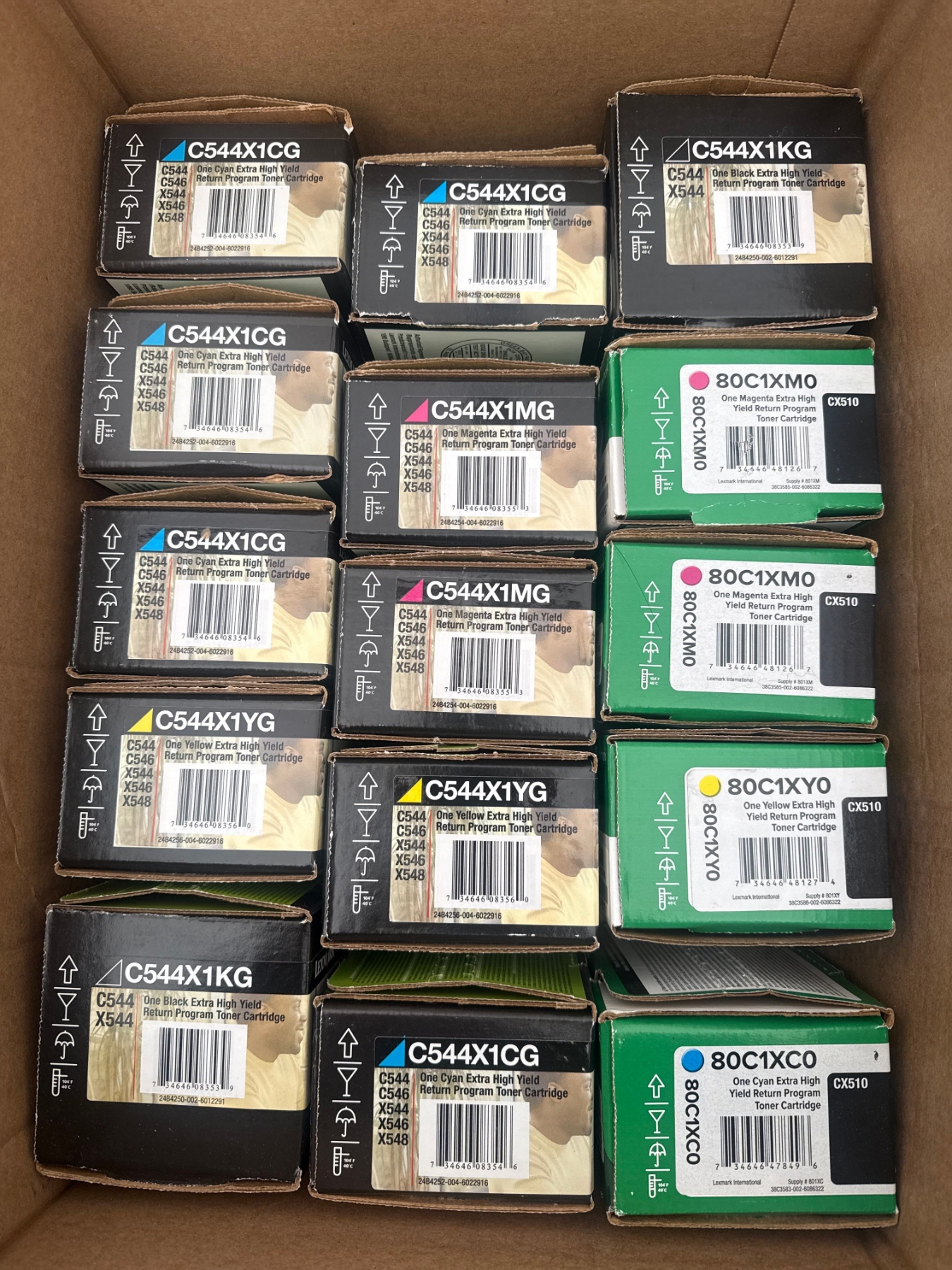 Lot 139 Assortment Of Lexmark Toner Cartridges Incl. Magenta Yellow & Cyan