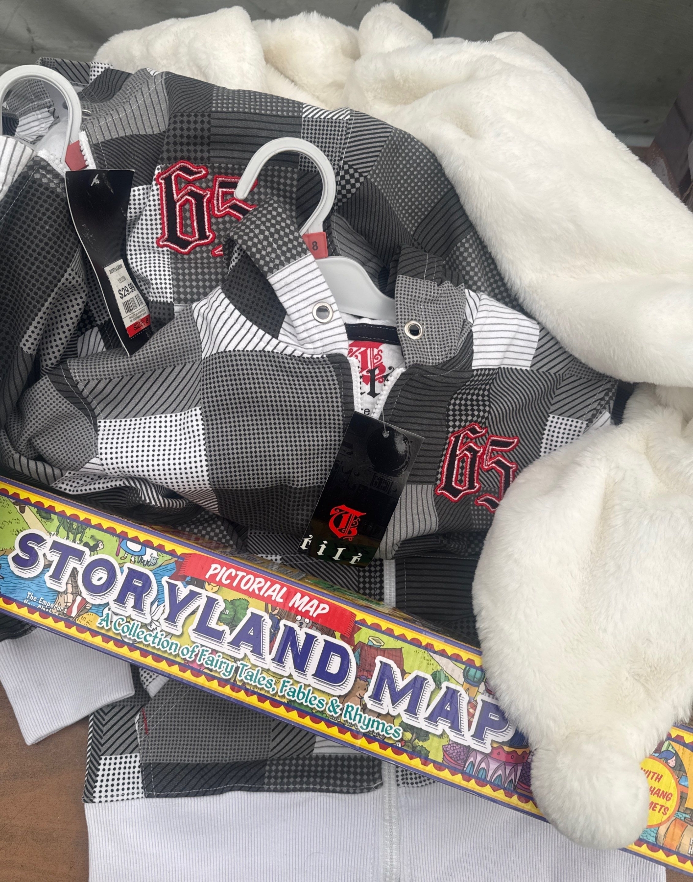Lot 142 NEW Boys Clothing Size 8 w/ Storyland Map & Faux Fur Throw Blankets
