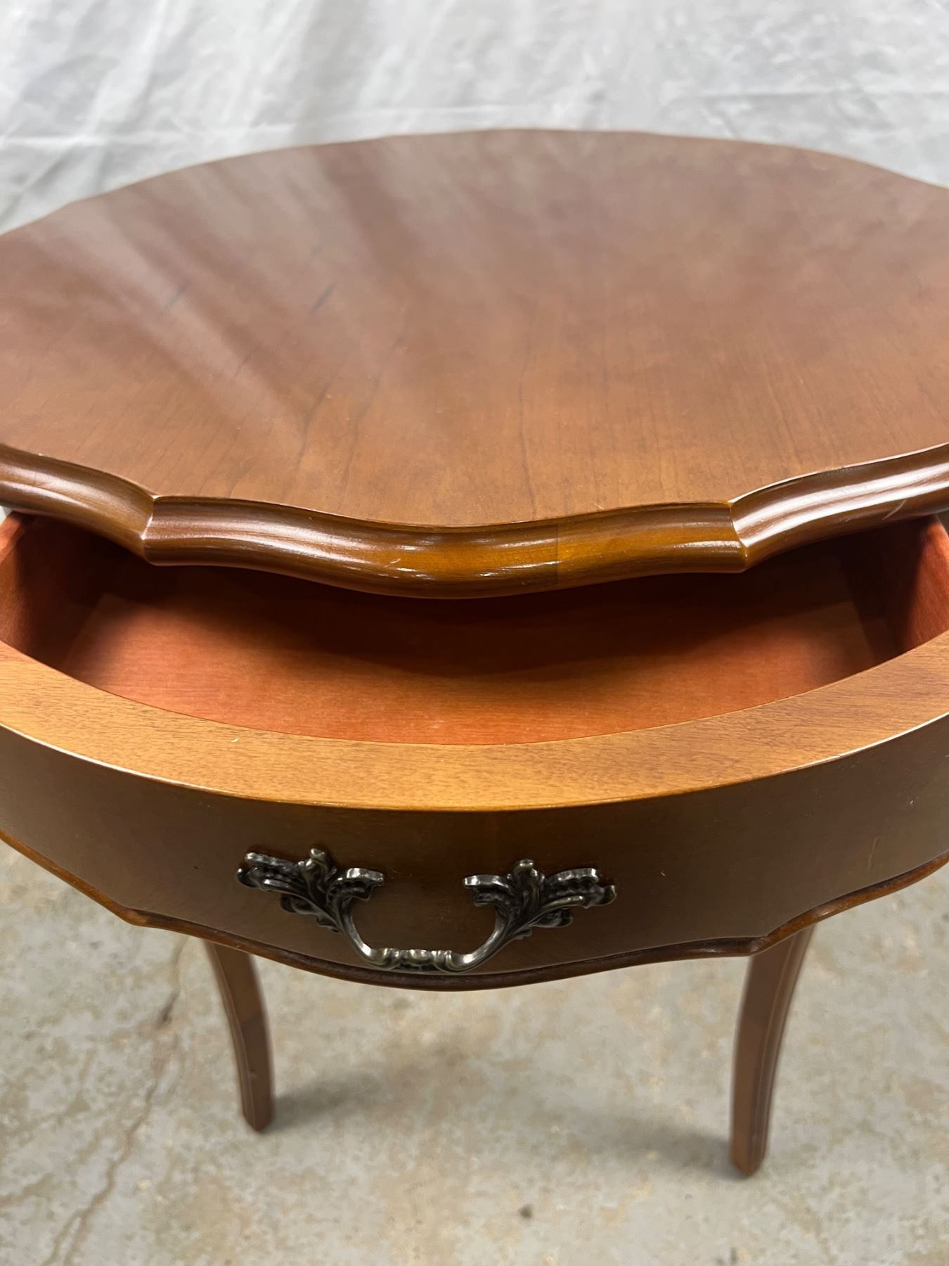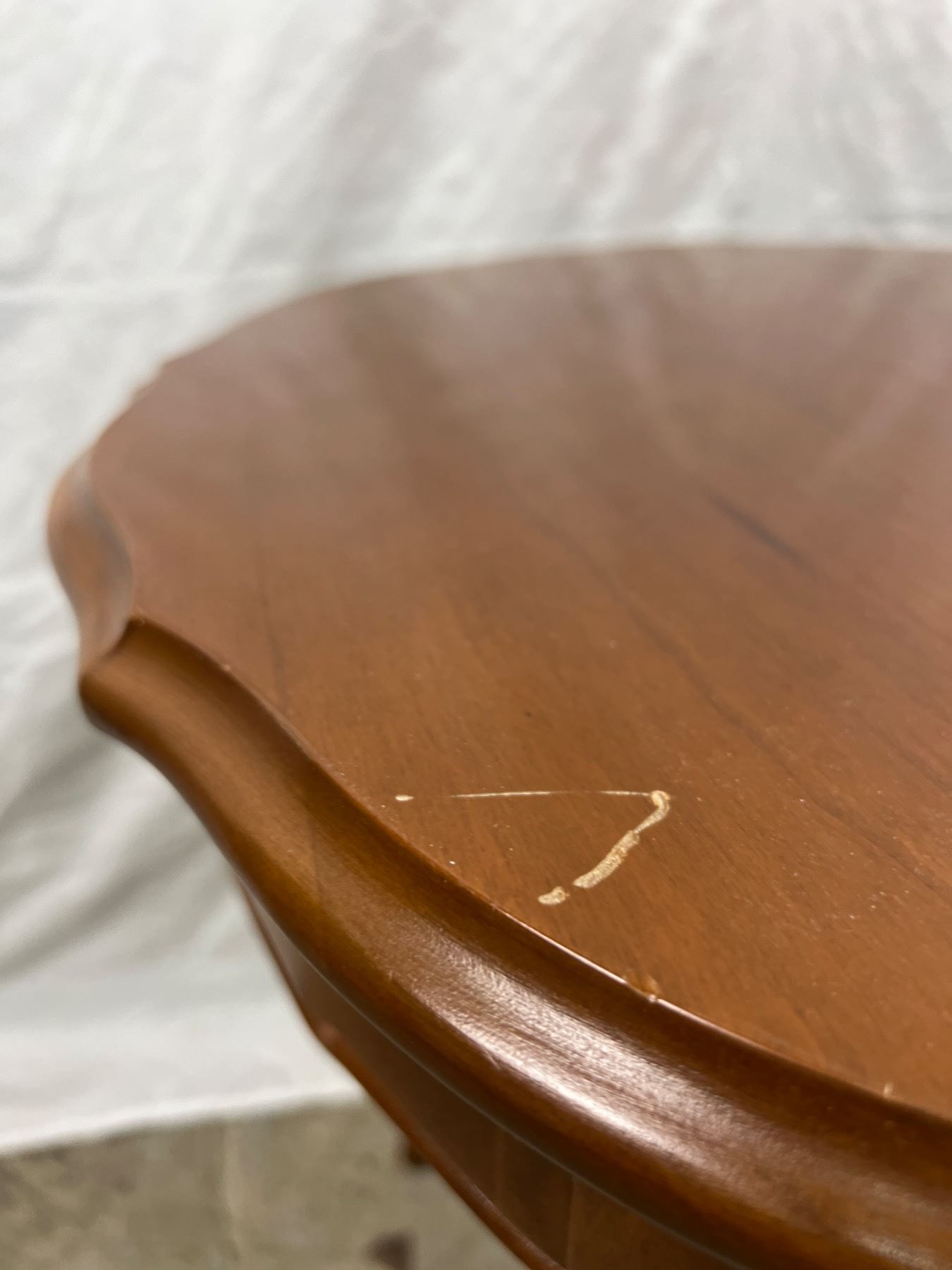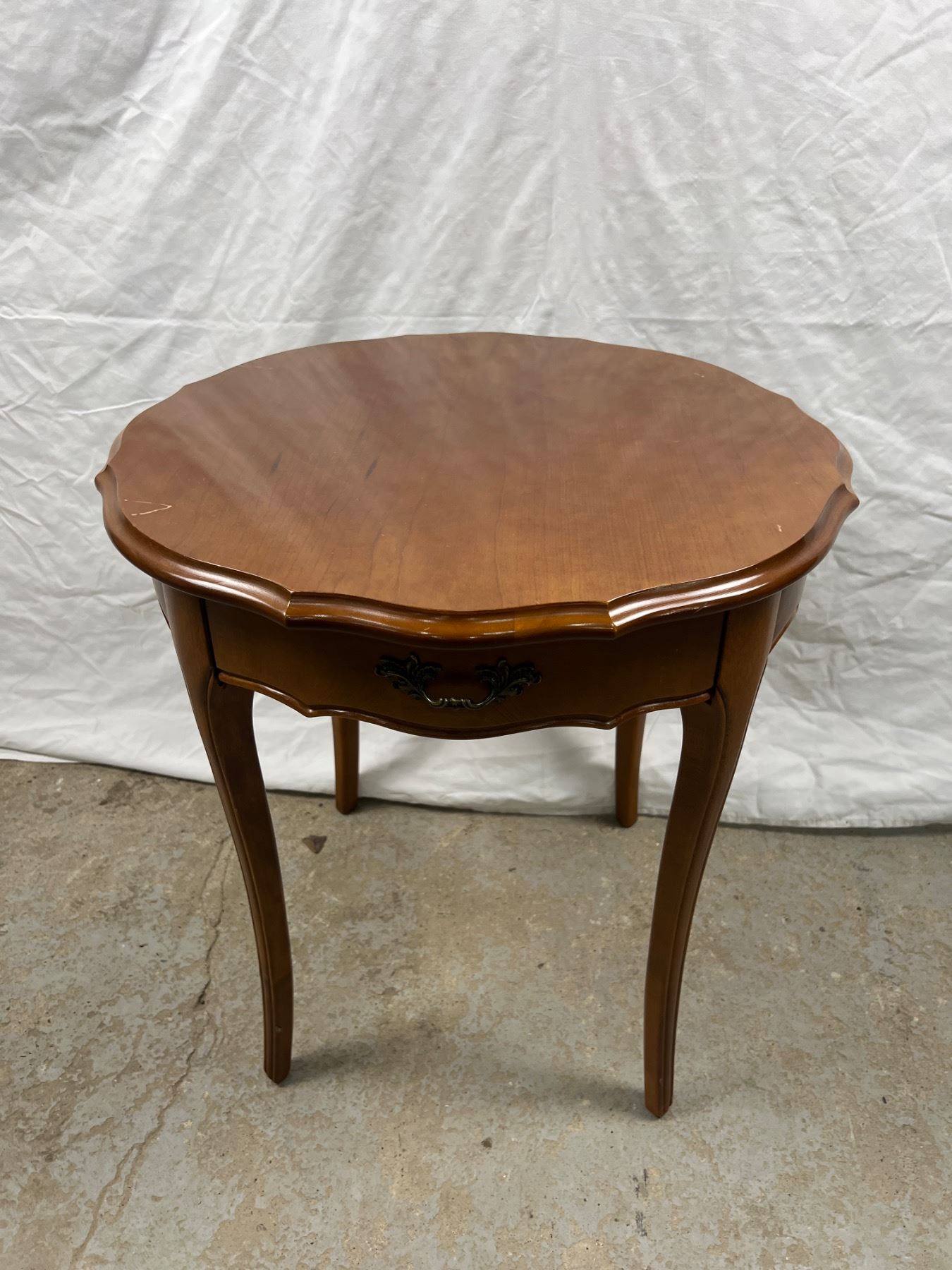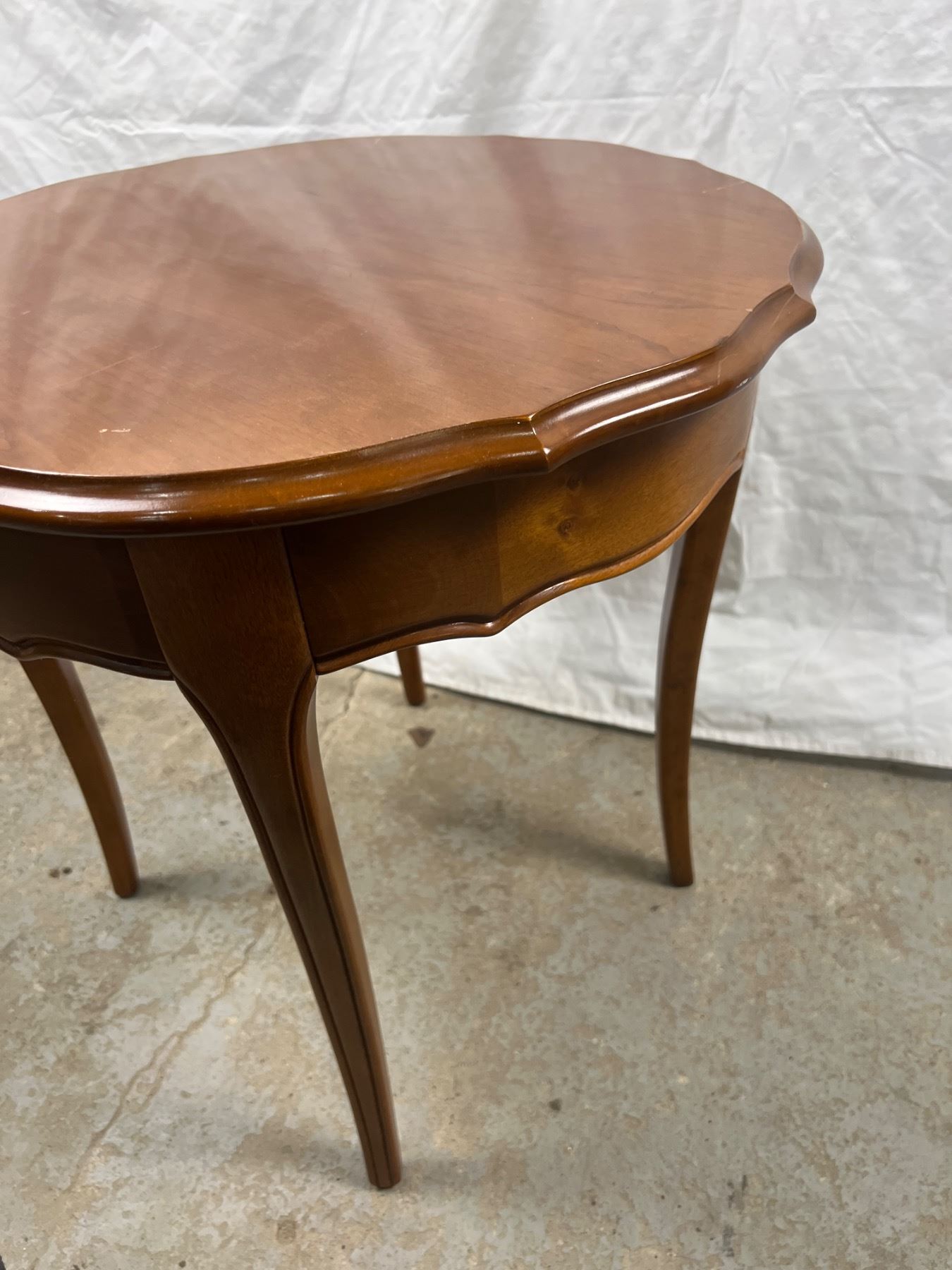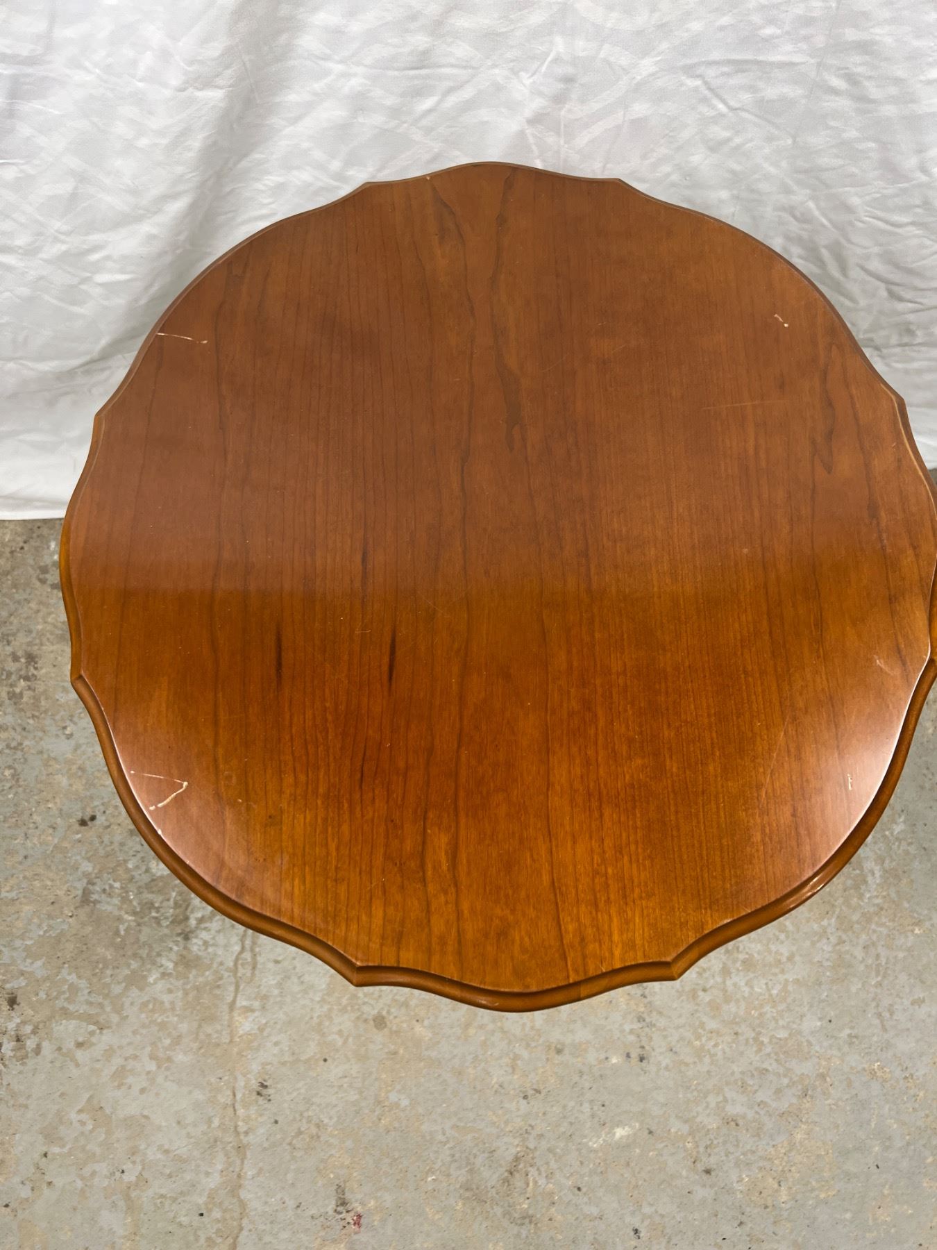 Has some scratches on the top, 22"diameter x 22"H