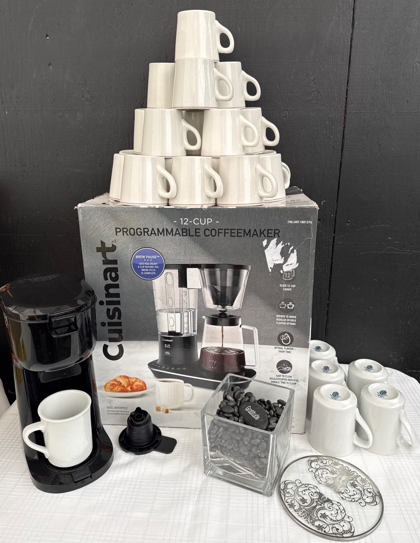 Lot 146 New Cuisineart 12 Cup Programmable Coffe Maker w/ Assorted Java Accessories